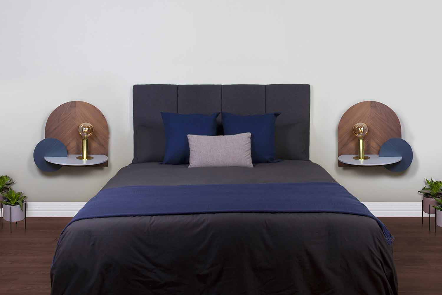 Dit modulaire nachtkastje vertegenwoordigt een innovatief en origineel idee dat elke aandacht in de kamer kan veroveren dankzij zijn unieke stijl en de combinatie van materialen en afwerkingen die elegantie en een uiterst modern design geven . De structuur bestaat uit 3 multiplex panelen, één in walnoothout en twee in blauw en grijs geverfd essenhout . Het paneel dat fungeert als een echt steunvlak, wordt aan de muur bevestigd en de 2 modulaire panelen worden erop gemonteerd, die in 8 verschillende configuraties kunnen worden geplaatst, waardoor een product wordt verkregen dat kan worden aangepast aan iemands behoeften en ruimtes. De structuur heeft ook een kabelgat achter het voorpaneel, waardoor ze kunnen worden verborgen en het nachtkastje nog functioneler en praktischer wordt. Tussen de verticale panelen en de muur bevindt zich een vak van 9 cm dat kan worden gebruikt om boeken en tijdschriften of andere voorwerpen op te bergen en te ordenen, waardoor de beschikbare ruimte optimaal wordt benut.