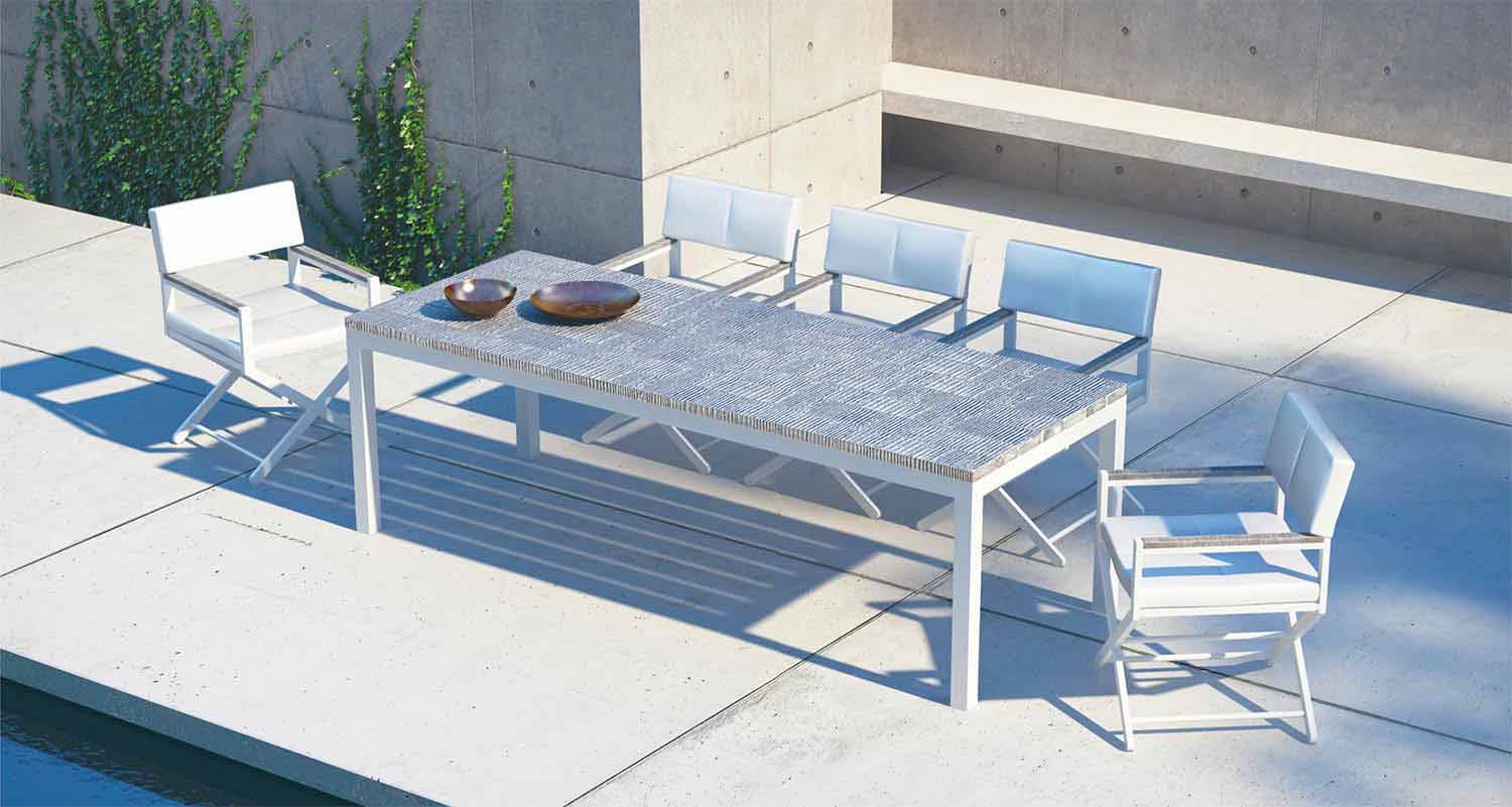 Het essentiële en tijdloze ontwerp en de winnende stijl worden de belangrijkste elementen voor uw buitenruimte. De structuur is van aluminium en de bijzonderheid wordt gegeven door het houten blad , waardoor een product ontstaat dat zowel voor binnen als buiten kan worden gebruikt.
