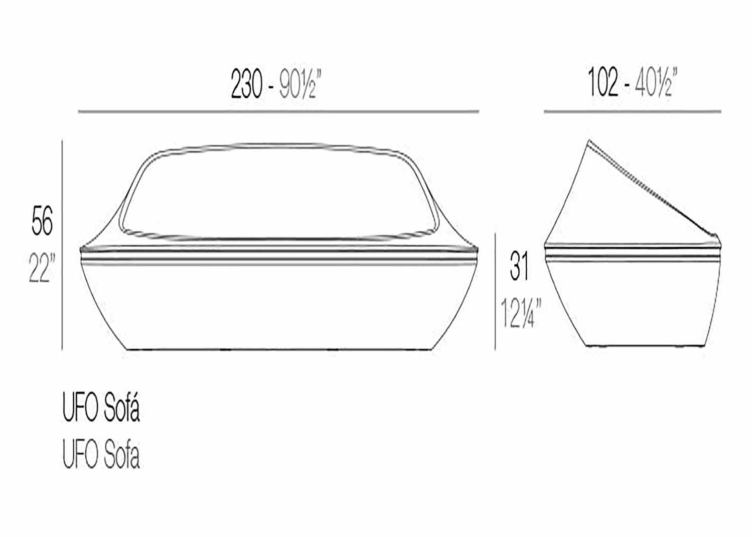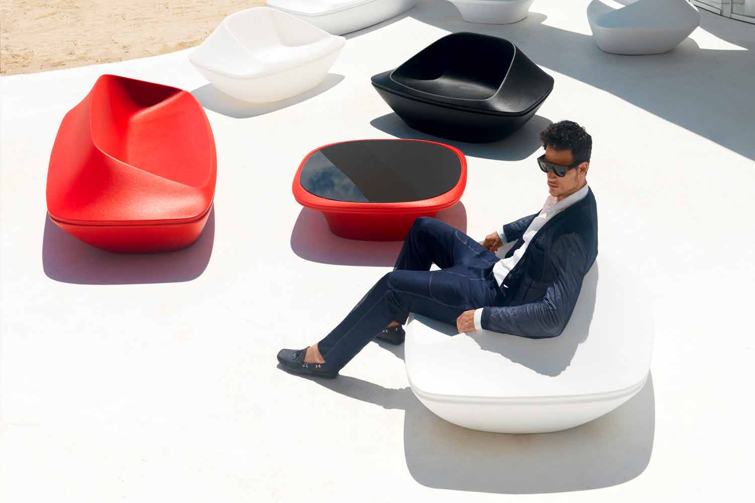 De Ufo-verzameling wordt gekenmerkt door de tegenstelling van negatieve en positieve vormen. Deze creatieve benadering heeft een monolithische, vloeiende en sculpturale lijn gecreëerd. Zijn artikelen stellen je in staat om verschillende combinaties te maken die gemakkelijk aan te passen zijn aan buitenruimtes dankzij de elegante en resistente materialen. De kleuren, het assortiment afwerkingen en de interne verlichting verbreden de mogelijkheden om verschillende omgevingen te creëren.