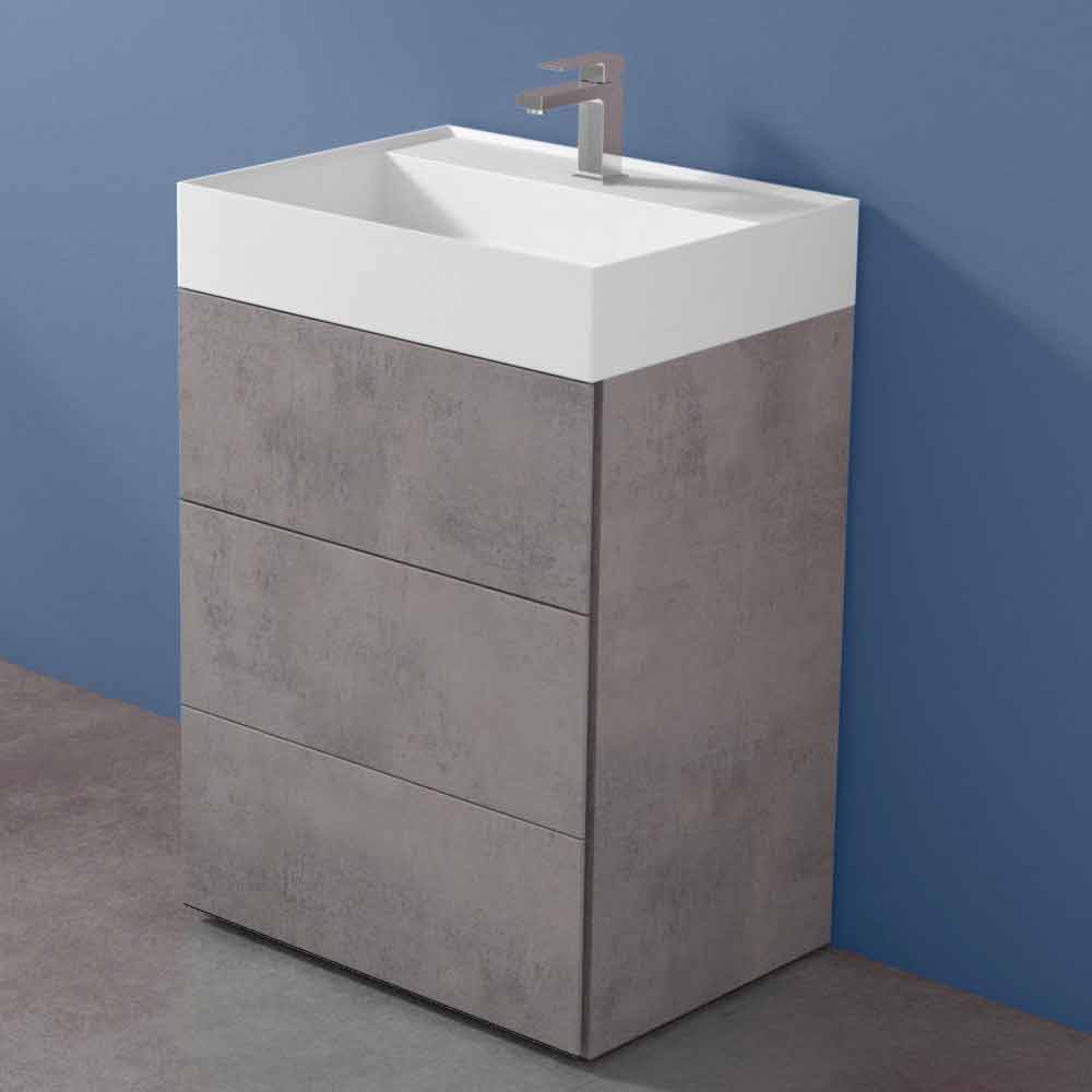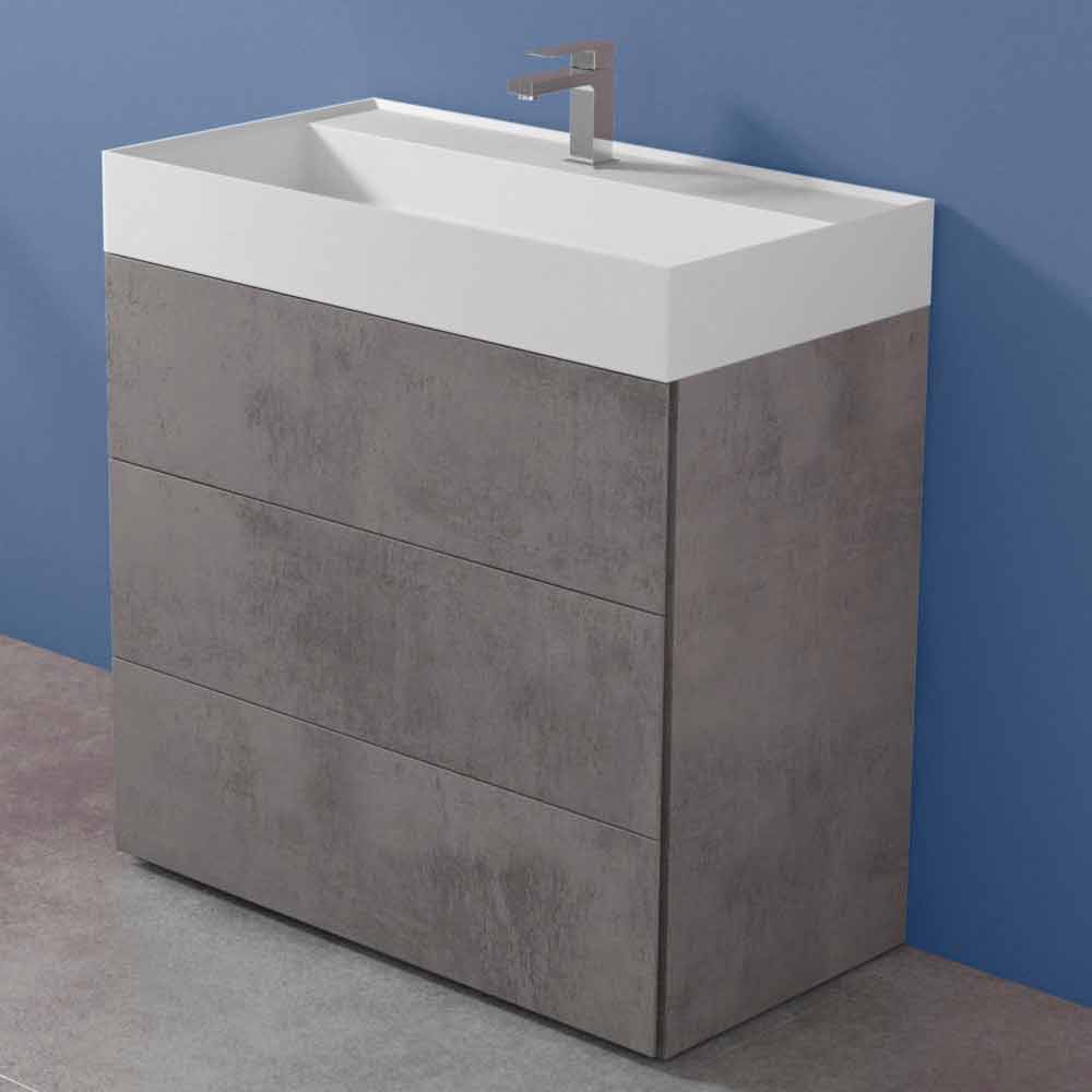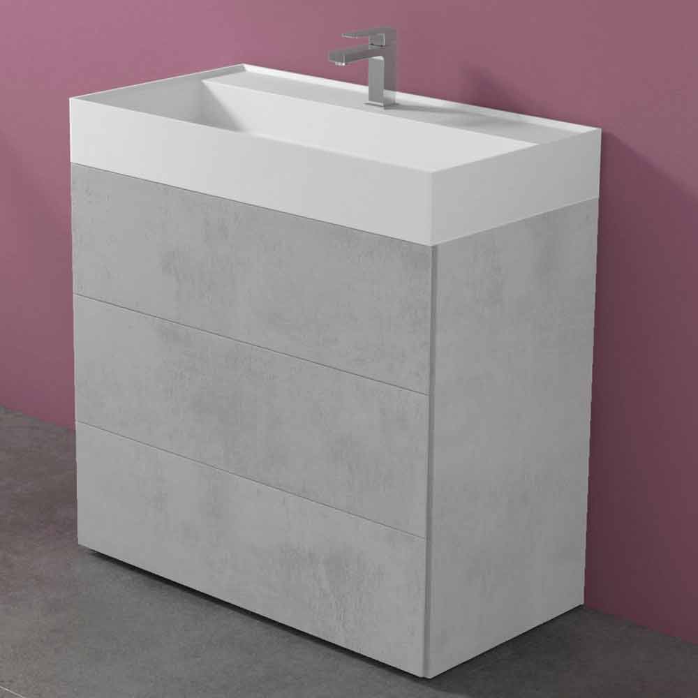 Badkamermeubel met wastafel, modern design in laminaat met 3 lades in verschillende kleuren en maten, made in Italy.