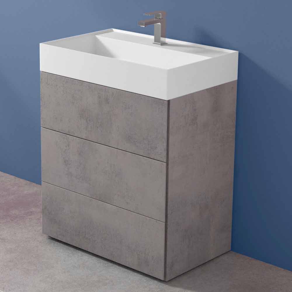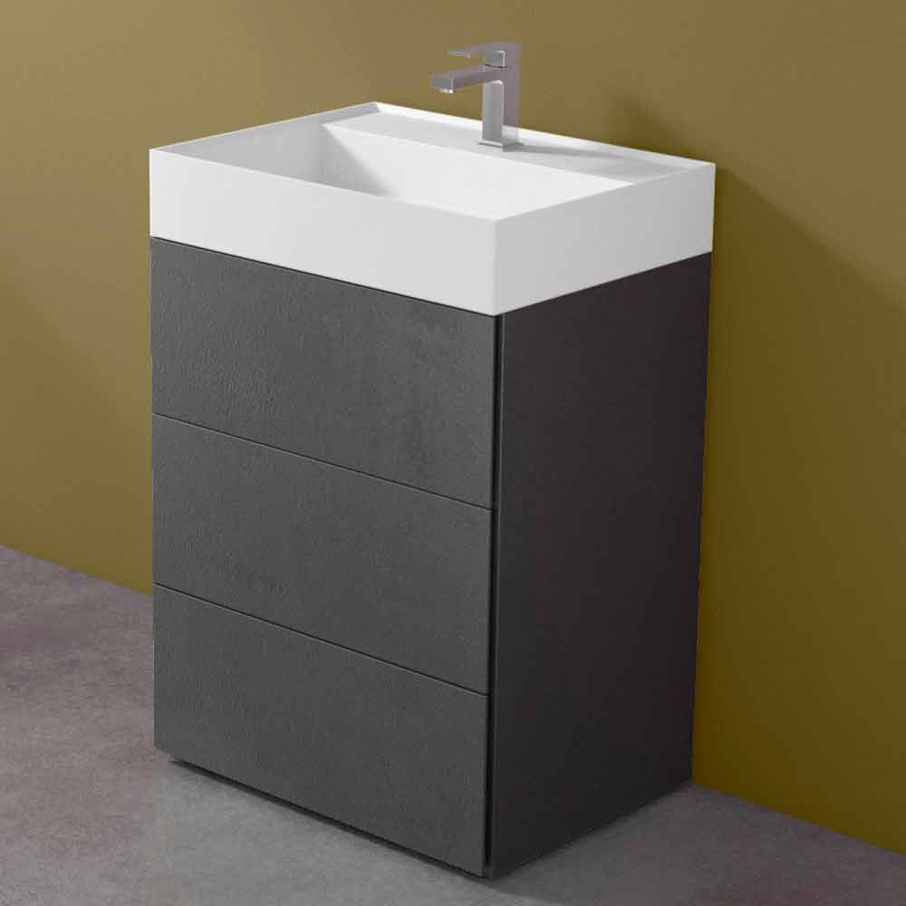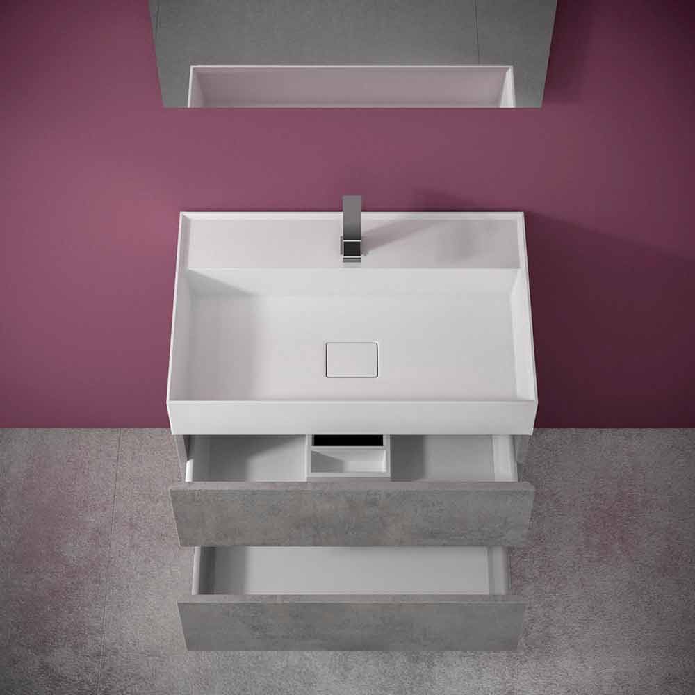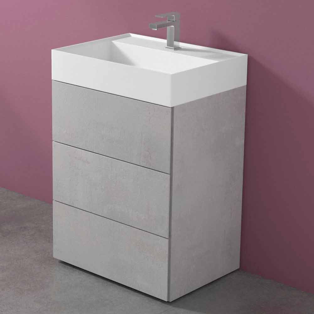 Badkamermeubel met wastafel, modern design in laminaat met 3 lades in verschillende kleuren en maten, made in Italy.