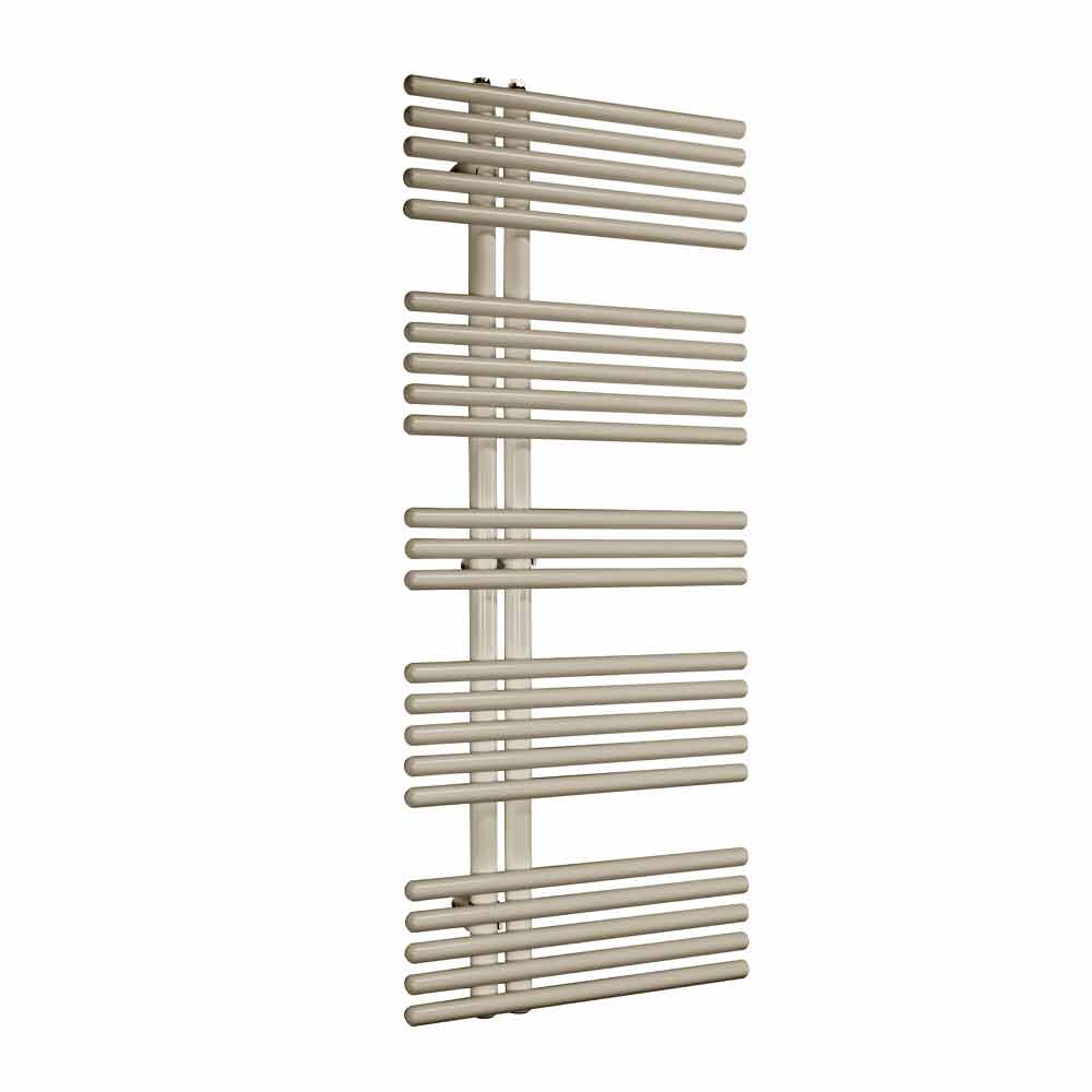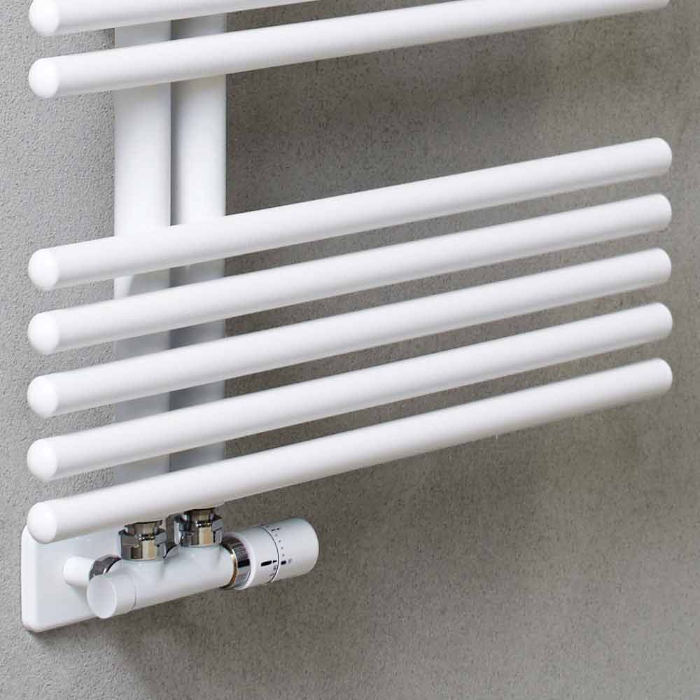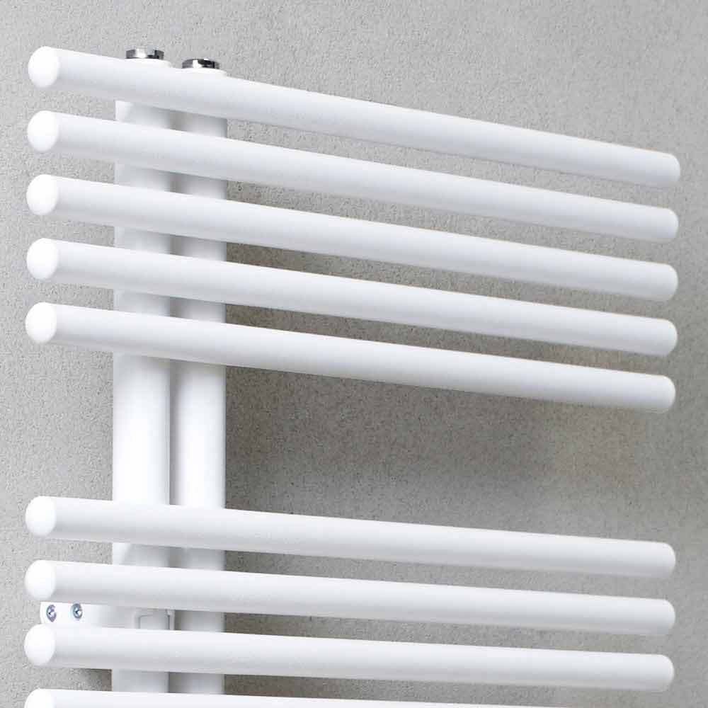 handdoekverwarmingsradiator heeft een ontwerp gemaakt met verticale buizen met een diameter van 35 mm en horizontale ronde buizen met een diameter van 25 mm. Zijn moderne en bijzondere vorm maakt het