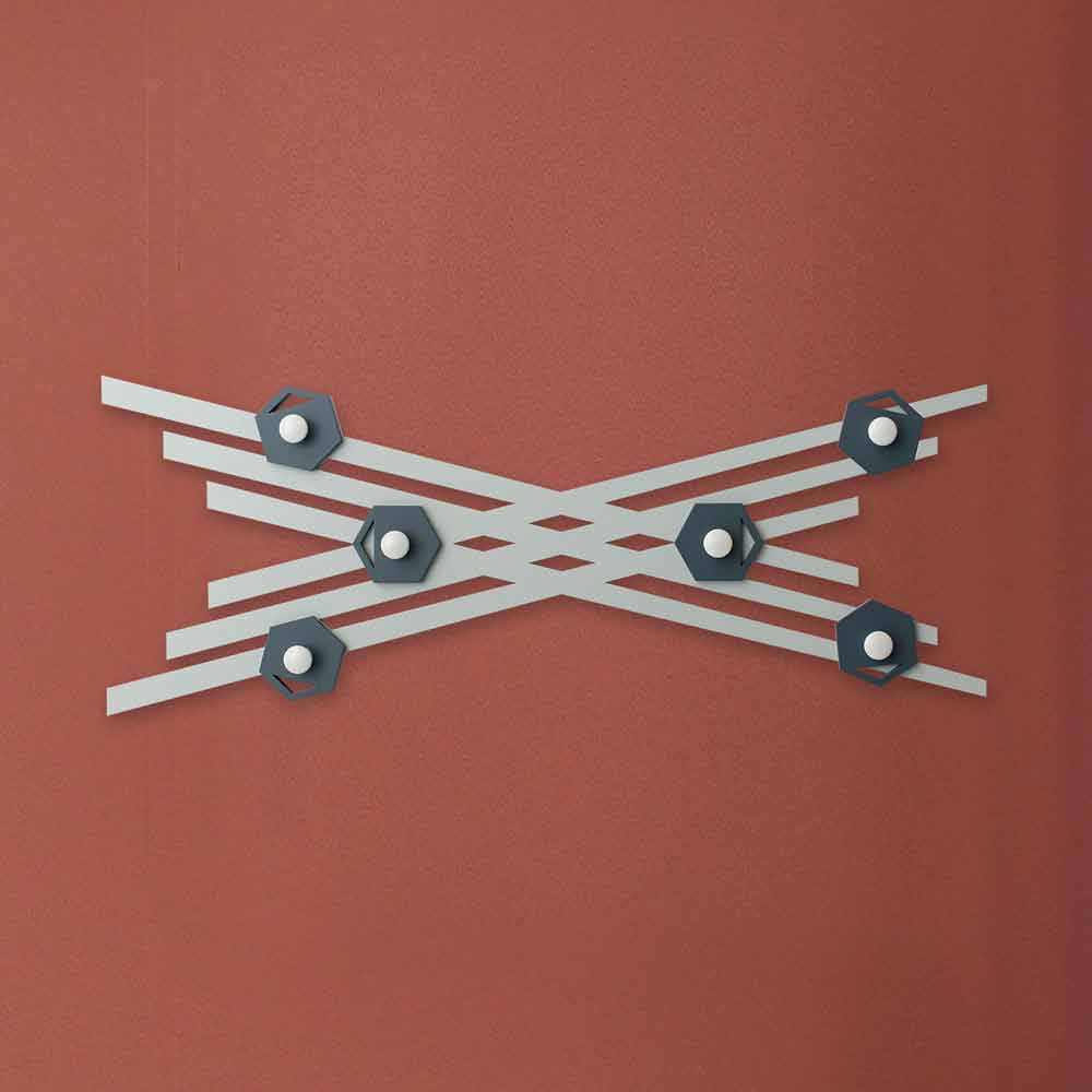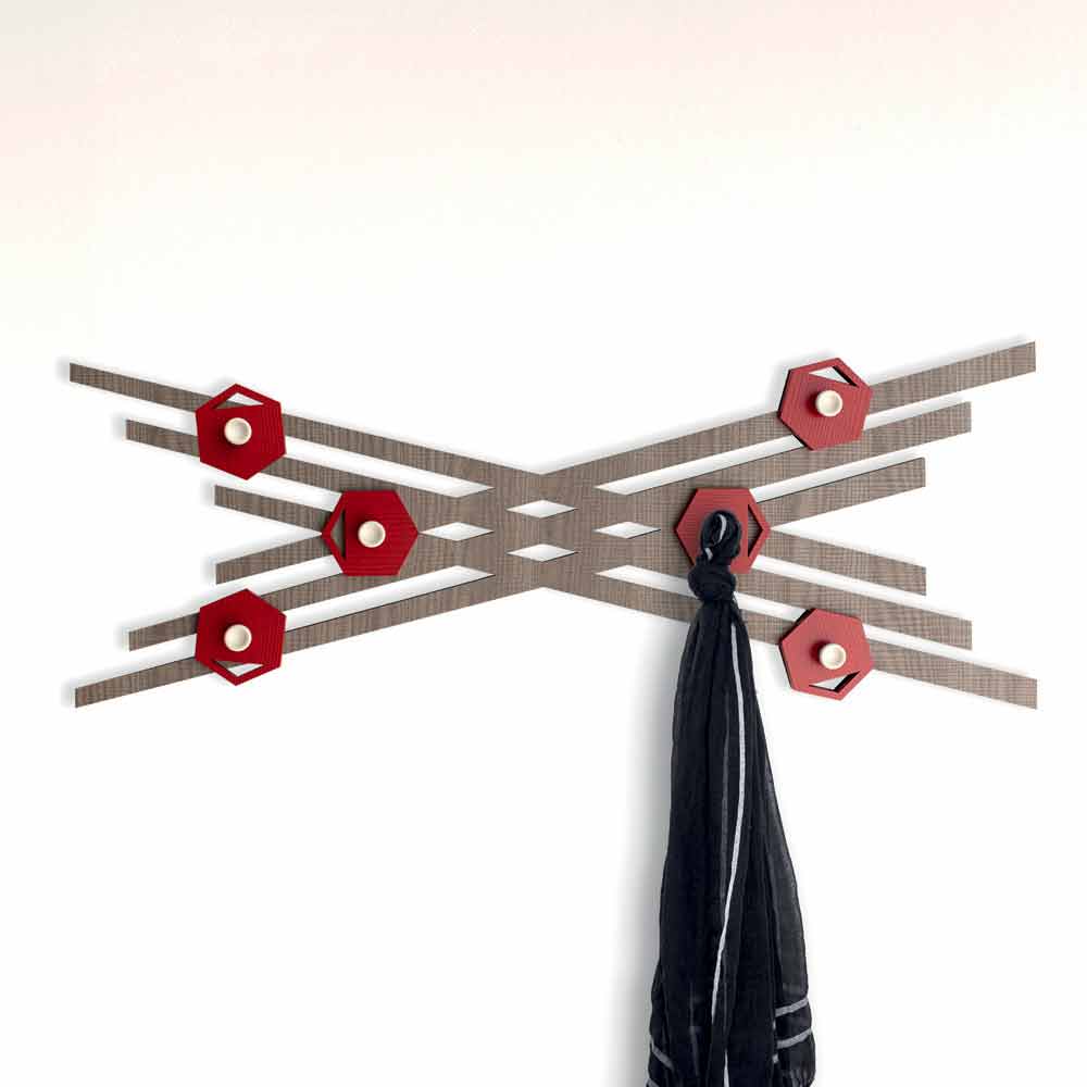 Wandkapstok voor aan de muur, modern design in gekleurd hout, gemaakt in Italië.