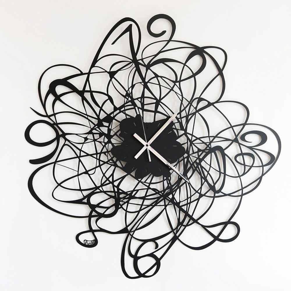 Modern design wandklok in zwart of wit geschilderd ijzer handgemaakt in Italië.