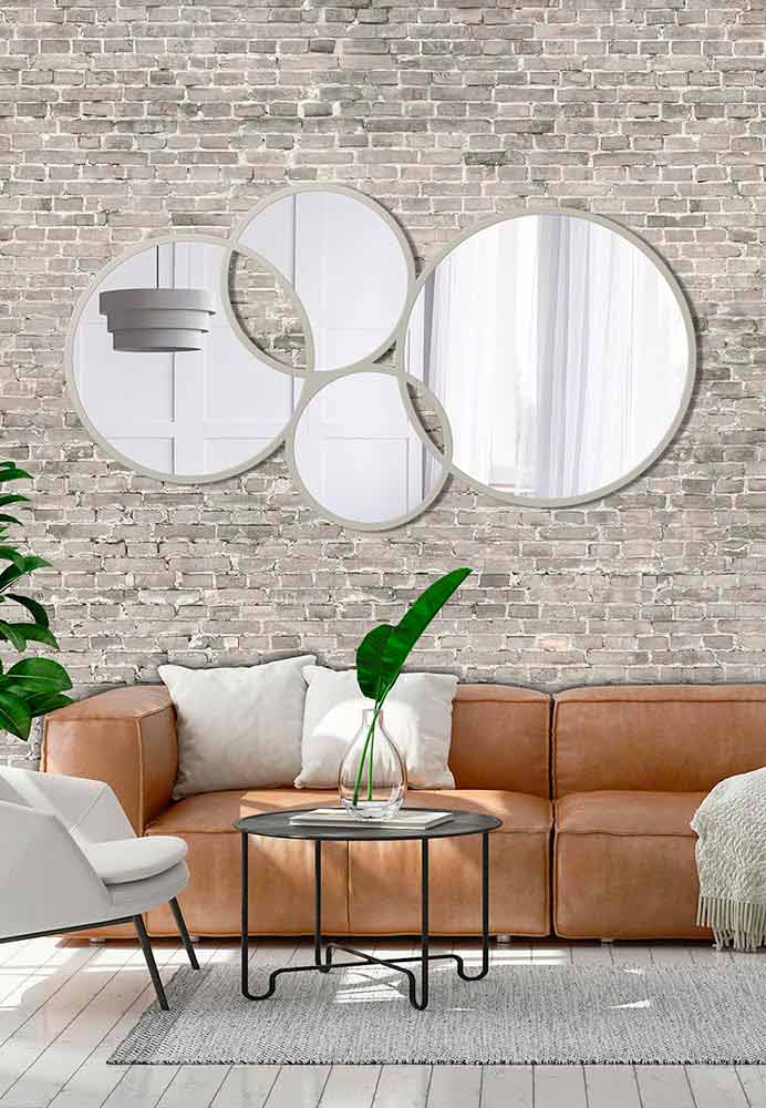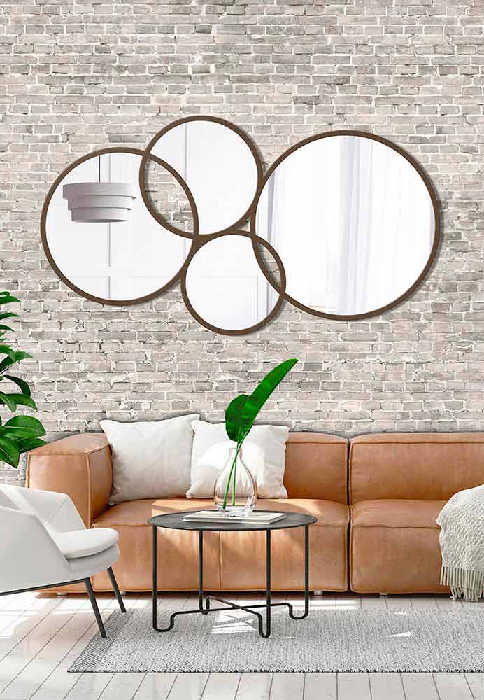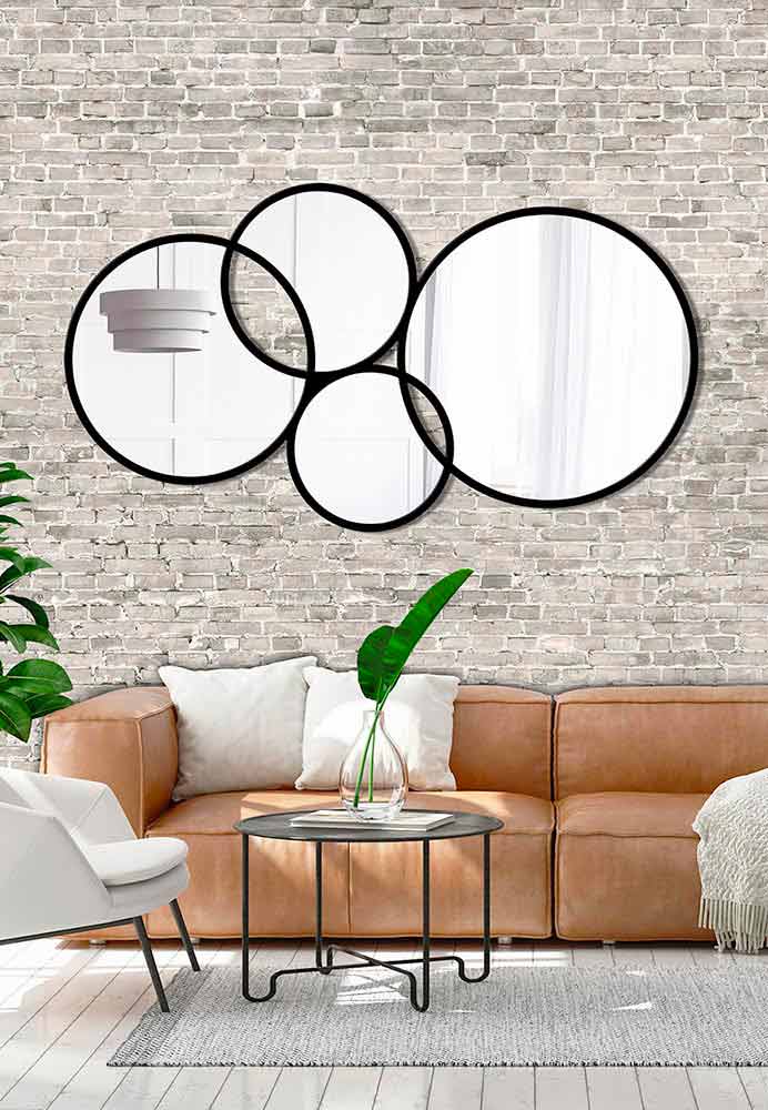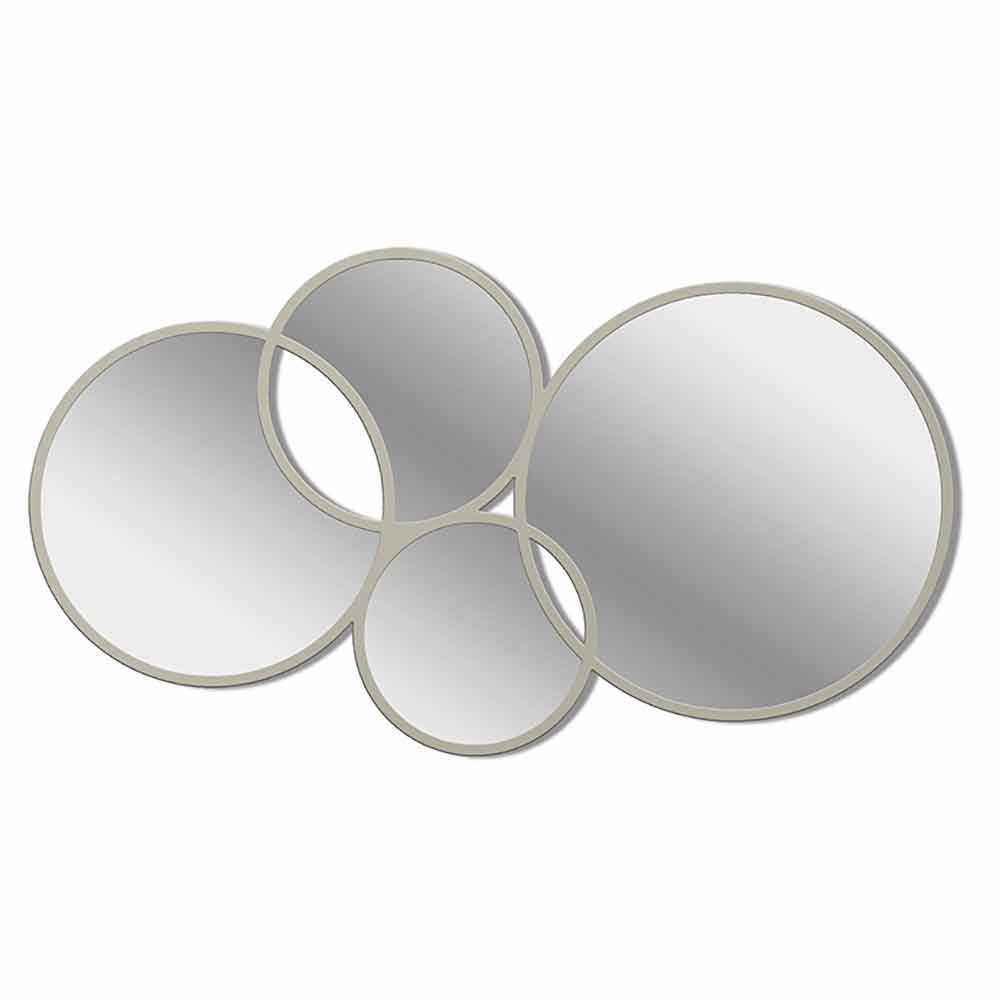 wandspiegel is samengesteld uit vier ronde spiegels die elkaar kruisen met elegante lijnen en moderne vormen gecombineerd met een verfijnde gelakte afwerking voor een resultaat met een minimale en decoratieve esthetische impact, in een unieke stijl.