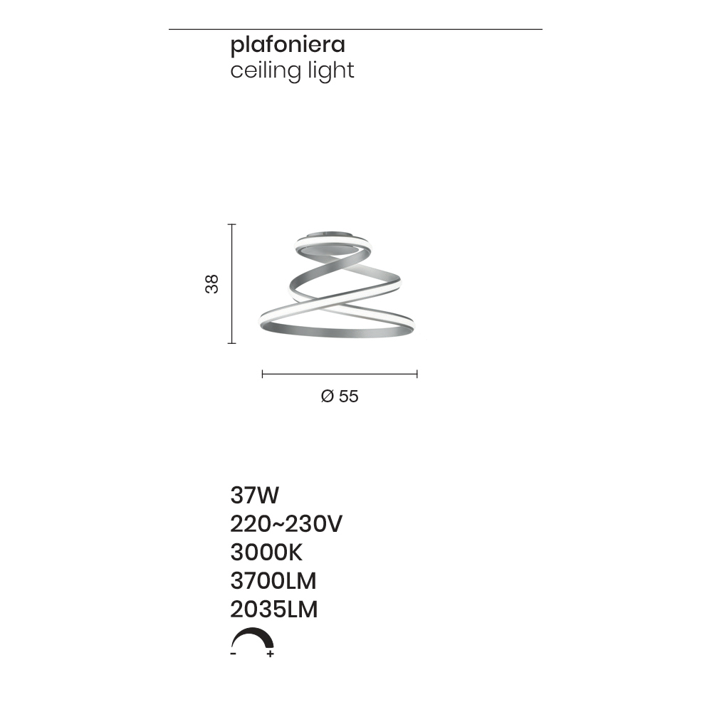Plafondlamp met wit gelakte metalen structuur compleet met LED lichtbron . Een dynamisch en modern ontwerp dat in staat is om de sensatie van een ronddraaiend lint na te bootsen en zo de waarde en esthetiek van het product te verrijken. Dit gevoel van beweging wordt zijn sterke punt en stelt het in staat om het middelpunt van de aandacht te veroveren in huishoudelijke of contractomgevingen met een eigentijdse en avant-garde stijl. De moderne LED-technologie zorgt ook voor kwaliteitsverlichting die de lamp compleet maakt en het een optimale aanvulling maakt voor mensen die op zoek zijn naar functionaliteit en design in één product.