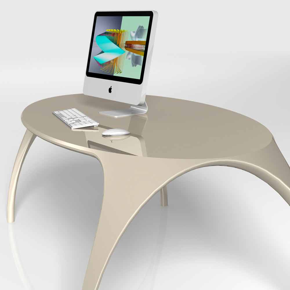 Pomposa is het bureau met een eleptische vorm dat wordt gekenmerkt door een elegant, modern en licht ontwerp.