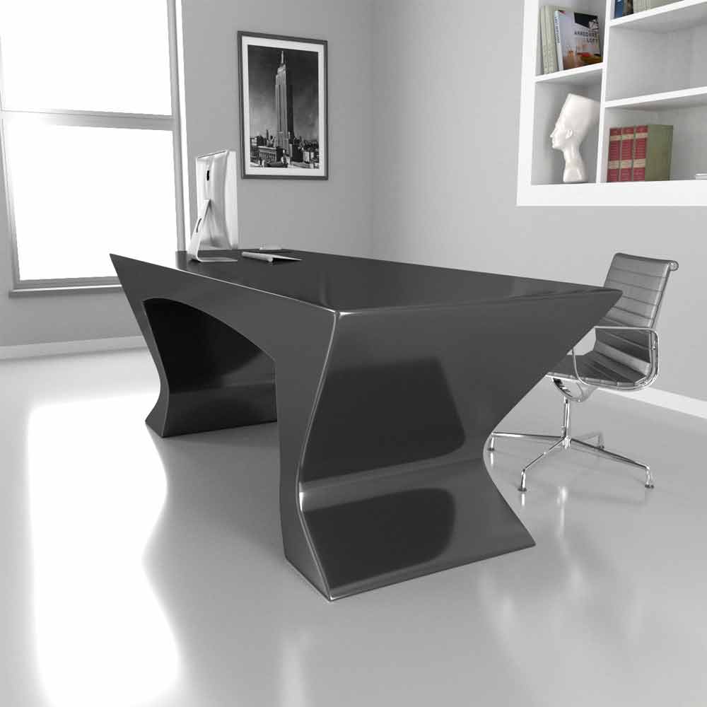 Bureau gekenmerkt door uiterst verfijnde en elegante lijnen, met een sobere en ‘koninklijke’ uitstraling, zoals de Egyptische koningin waar het inspiratie uit haalt. De antieke smaak, geaccentueerd door het feit dat de lade ook in natuurlijk hout is uitgevoerd, creëert een mooi contrast met de moderniteit en glans van de Solid Surface-structuur; van het bureau. Verkrijgbaar in twee kleurvarianten: wit (RAL9003) of zwart (RAL9005).