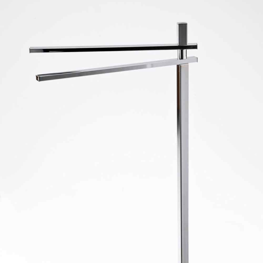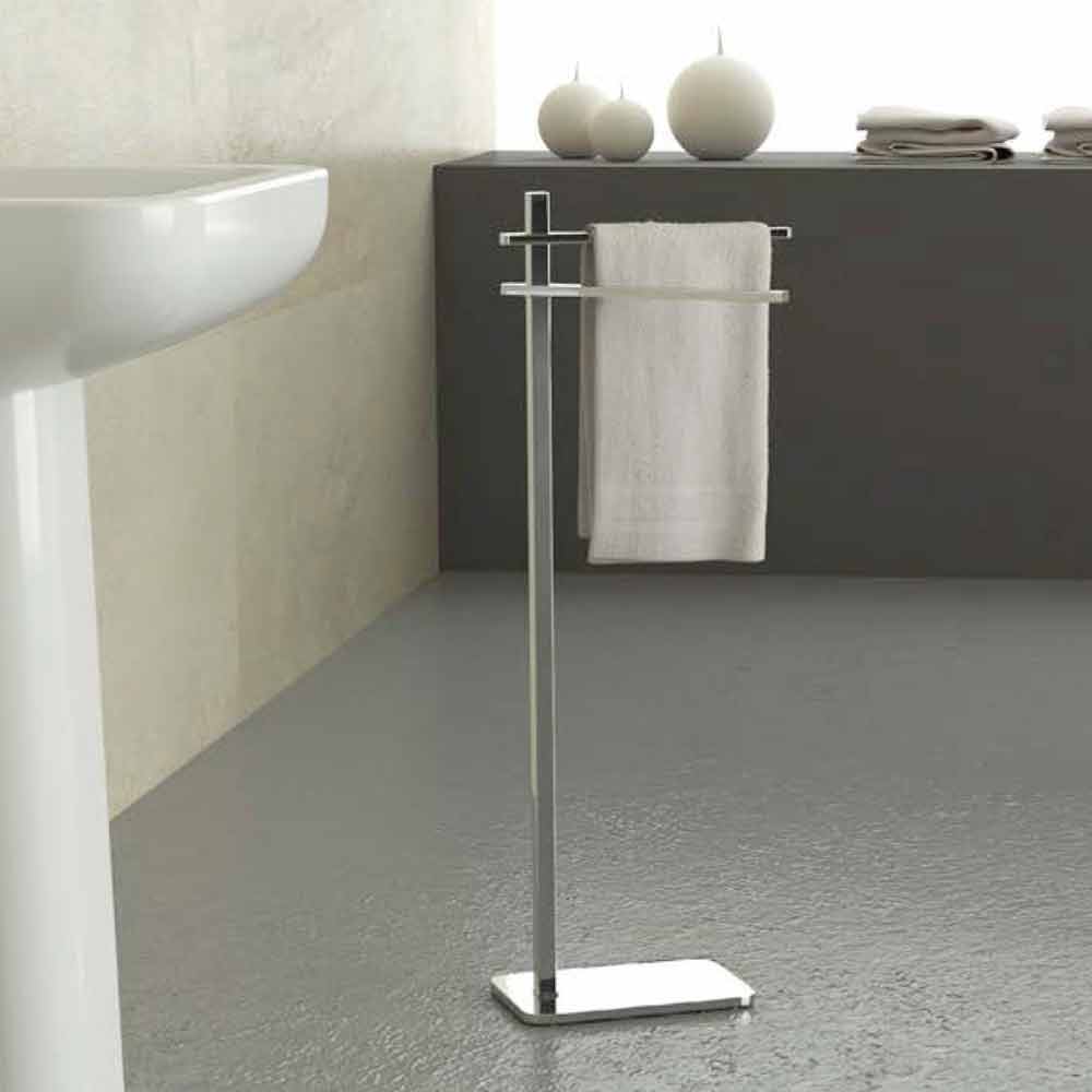Staande lamp voor handdoeken gemaakt in Italië met 2-armige verchroomde ijzeren structuur . Gekenmerkt door zachte en ronde lijnen , wat dit meubelaccessoire met een verfijnde smaak uniek maakt, is zijn onmiskenbare eenvoud die zijn elegantie en sterke persoonlijkheid onderstreept.
