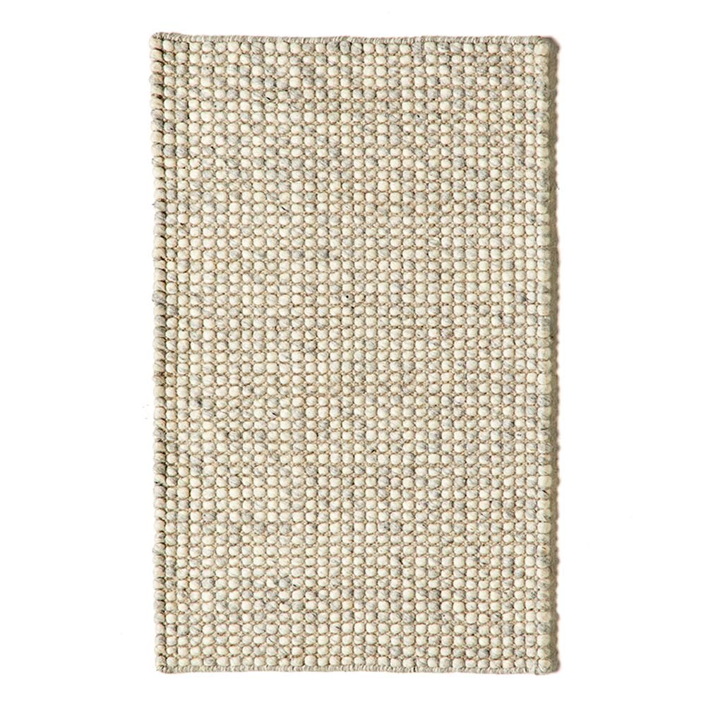 Modern handgeweven vloerkleed op een frame van wol en katoen.