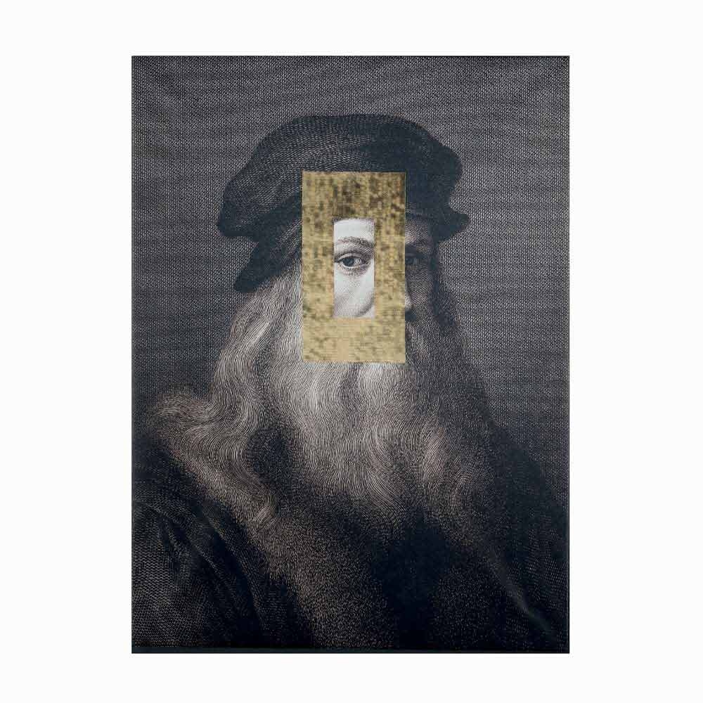 Moderne muurschildering gemaakt in Italië in hout met bedrukt canvas met Leonardo da Vinci en verrijkt met een rechthoekige decoratie in bladgoud . De elegantie van het ontwerp ontmoet de verfijning van de materialen om leven te geven aan een originele aanvulling die de woninginrichting op een exclusieve manier en met een sterke moderne persoonlijkheid kan vervolledigen. Een uiterst origineel inrichtingsidee dat elke ruimte in huis kan verrijken met persoonlijkheid en elegantie, met alle levendigheid van creatieve prints en nieuwe technieken en een perfecte oplossing blijkt te zijn voor wie op zoek is naar een creatieve en excentrieke stijl voor de muren van hun huis.