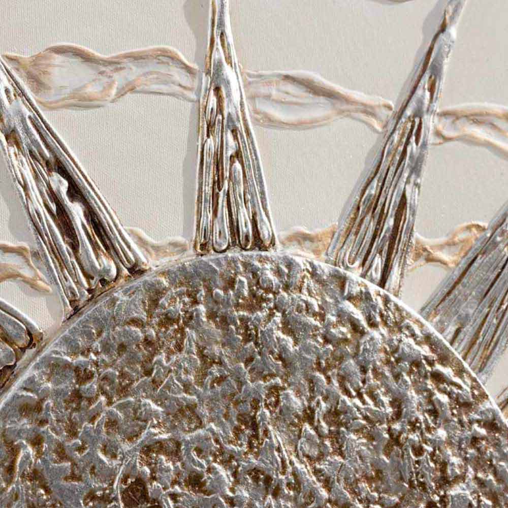 Dan, gemaakt door ambachtslieden, bestaat uit een canvasstructuur met twee lagen, die met de hand is verbonden en gedecoreerd met harsdetails op materiaal en een centraal reliëfelement.