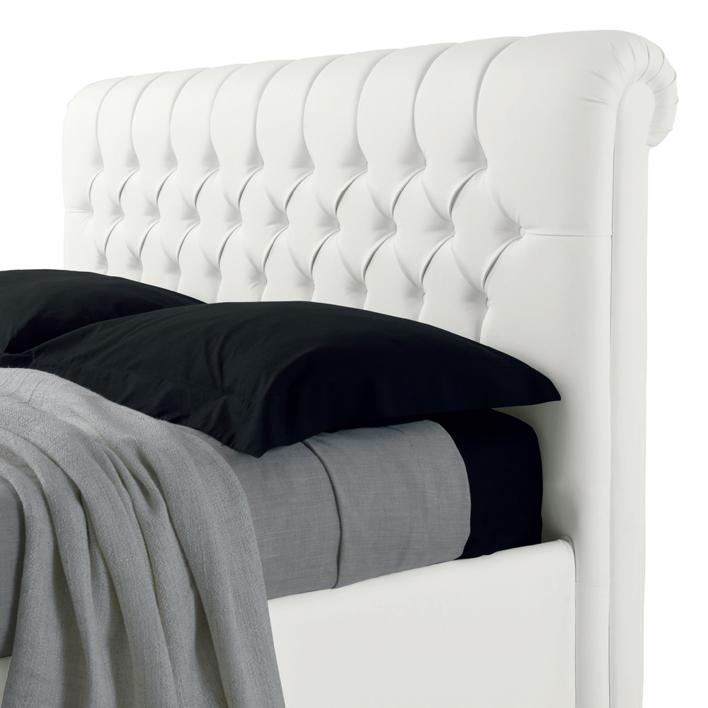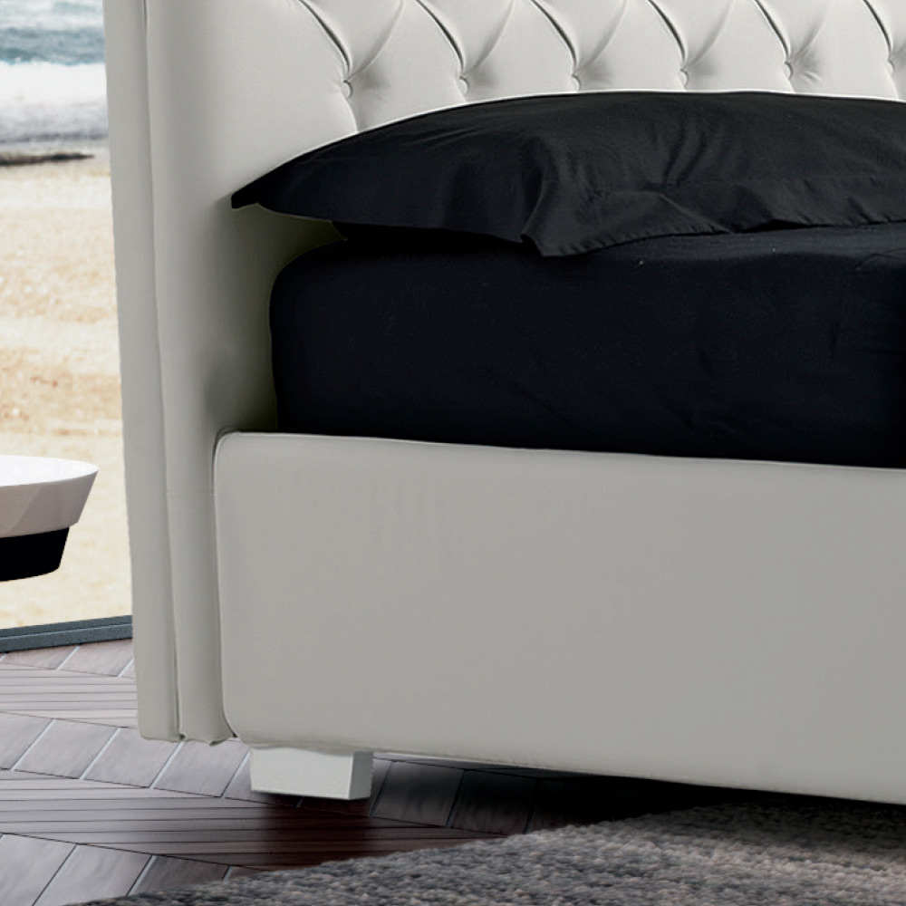 geheel met de hand is gemaakt door meesterstoffeerders , waarvan de capitonnè afwerking de perfecte geometrie van het ruitvormige ontwerp van het hoofdeinde, versierd met knopen, versterkt. Binnenin een stevig populieren multiplex frame met D30 niet-vervormbare polyurethaan vulling.