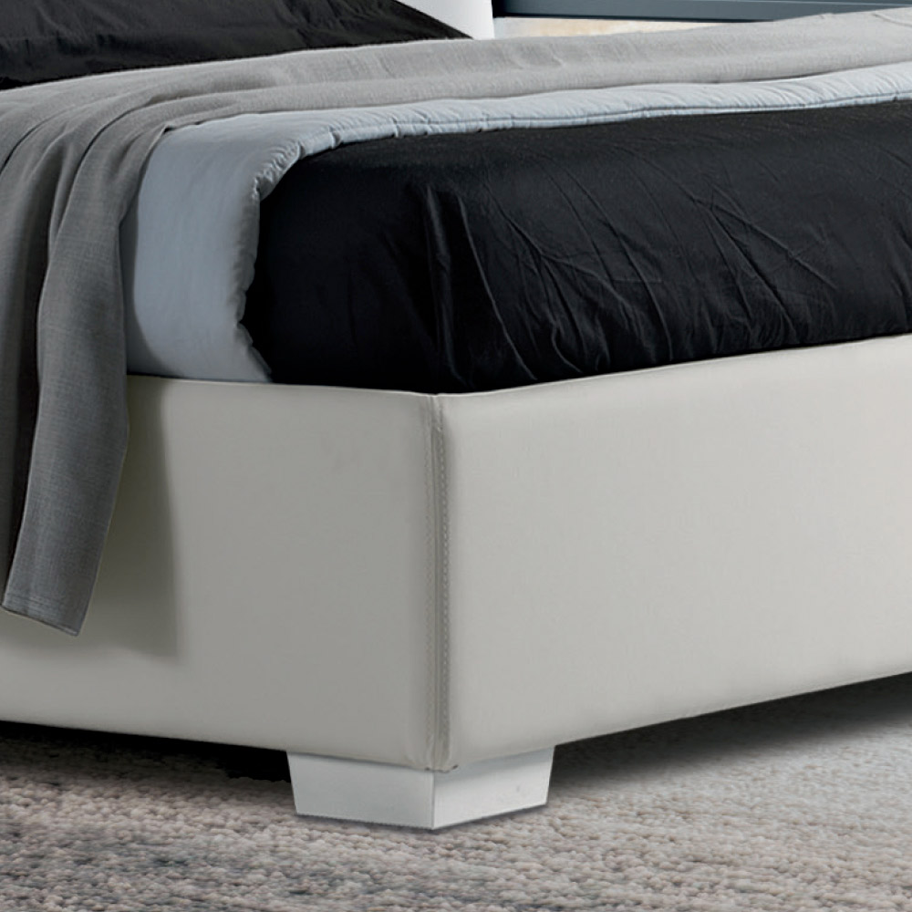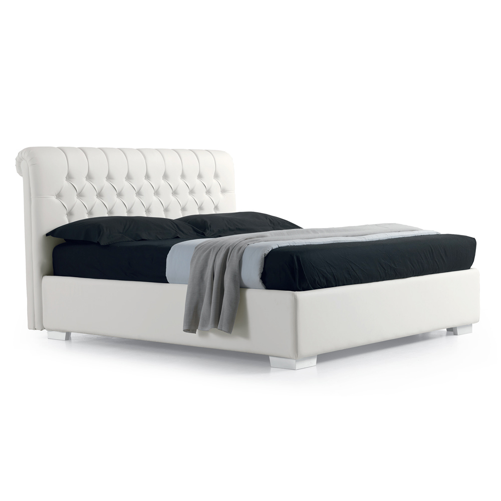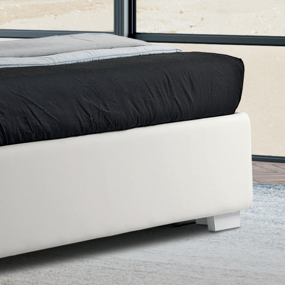 Gestoffeerd tweepersoonsbed met eco-lederen bekleding, met opbergvak, gemaakt in Italië.