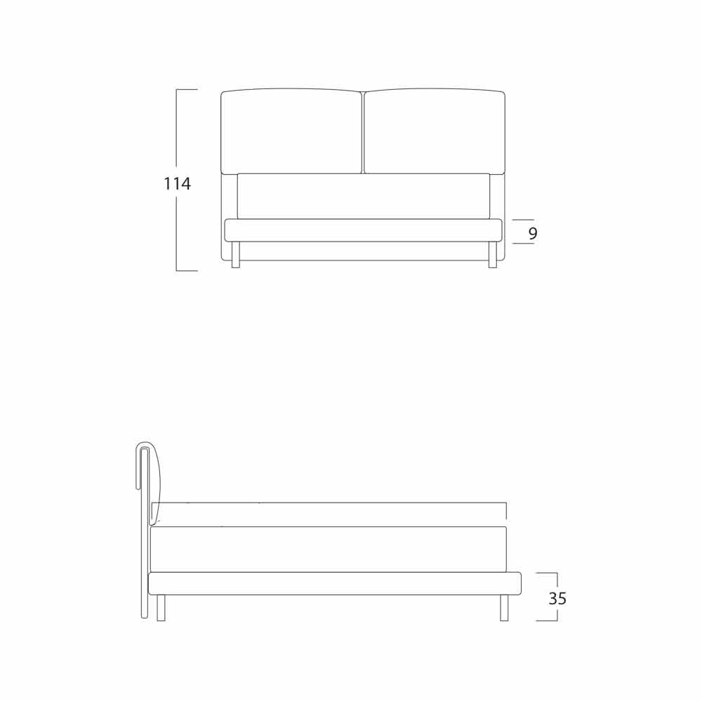 Het Iorca tweepersoonsbed wordt gekenmerkt door een dunne basis van 9 cm hoog, wat de structuur lichtheid en eenvoud geeft. De bijzonderheid van dit bed zijn de grote en comfortabele hoofdeindekussens. Iorca is ontworpen om van de slaapkamer een ruimte te maken die is ontworpen voor ontspanning, waar u kunt genieten van aangename momenten van comfort. De zachte en eenvoudige lijnen creëren een intieme sfeer. Het is ook volledig afneembaar.