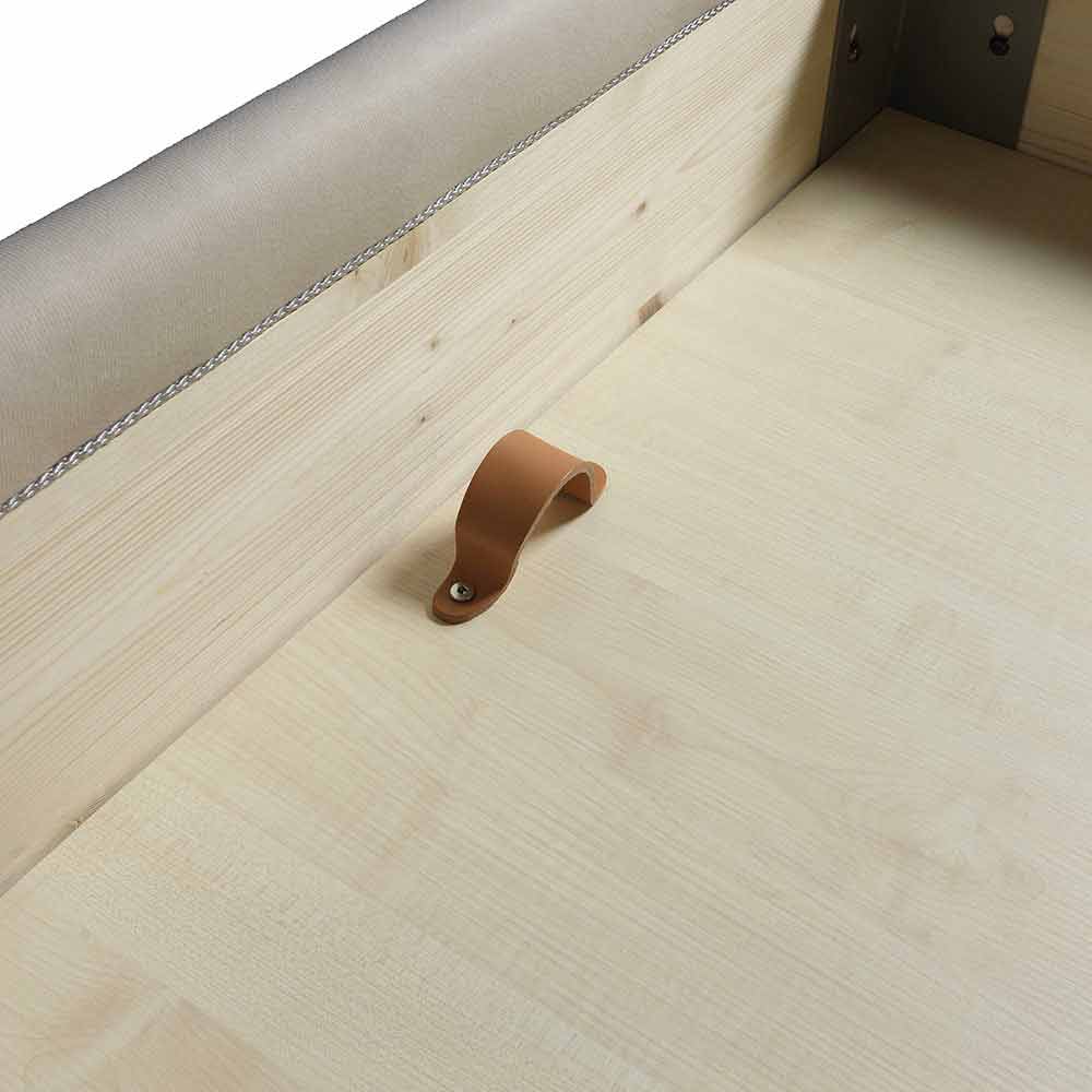 Het is volledig verwijderbaar. De structuur is in dennenhouten stroken met een natuurlijke interne afwerking h.29 cm, bedekt met polyurethaanschuim zonder chloorfluorkoolstoffen volgens de UNI-normen en bekleed met lichtbestendig velfodera. De onderkanten van de structuur zijn in houtagglomeraat met een synthetische interne afwerking met een denneneffect, de laatste worden ondersteund door PE en buisvormige profielen. Lattenbodem met metalen structuur, gebogen frame met 50x37 mm profiel geverfd met epoxypoeders. Normale orthopedische lattenbodem, gebogen beuken multiplex latten