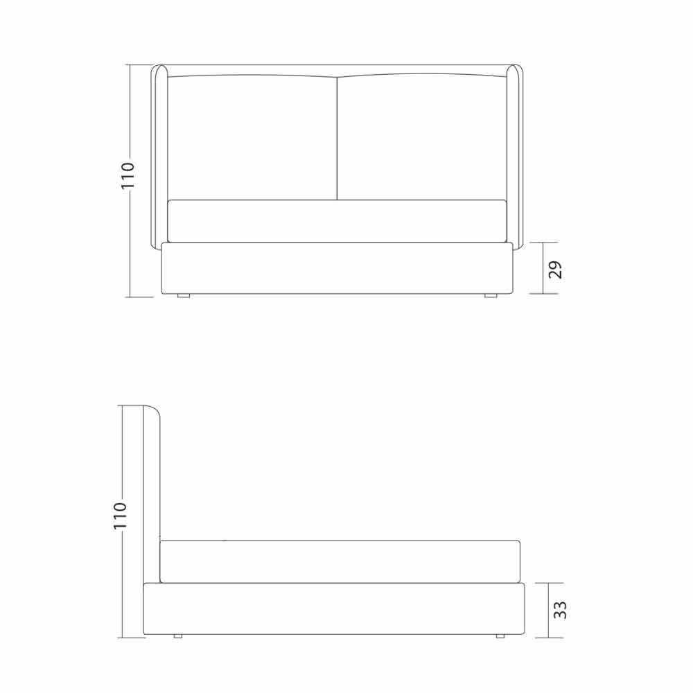 - 160x200 cm (afgewerkte maat L 190 x D 220 x H 110 cm);