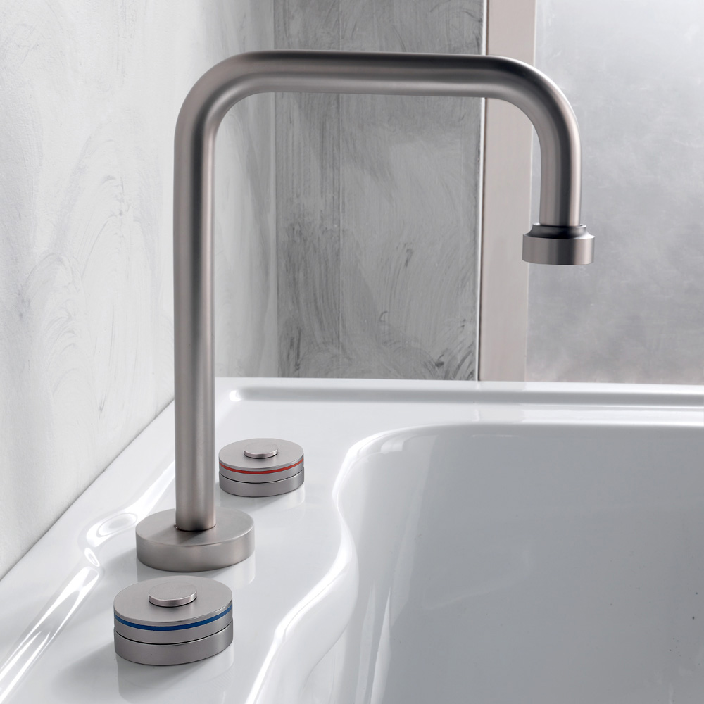 Moderne 3-gats messing wastafelmengkraan met afvoer Made in Italy