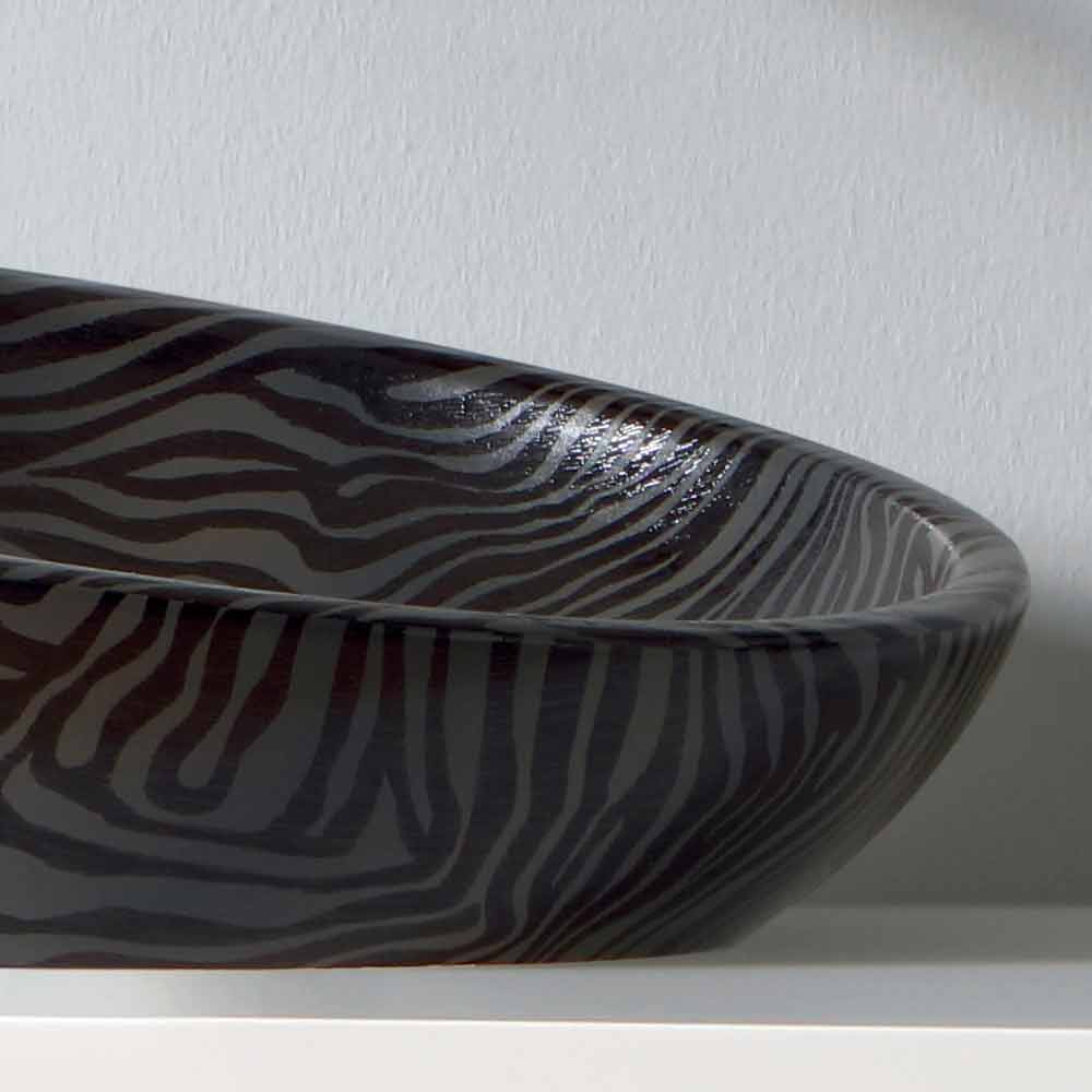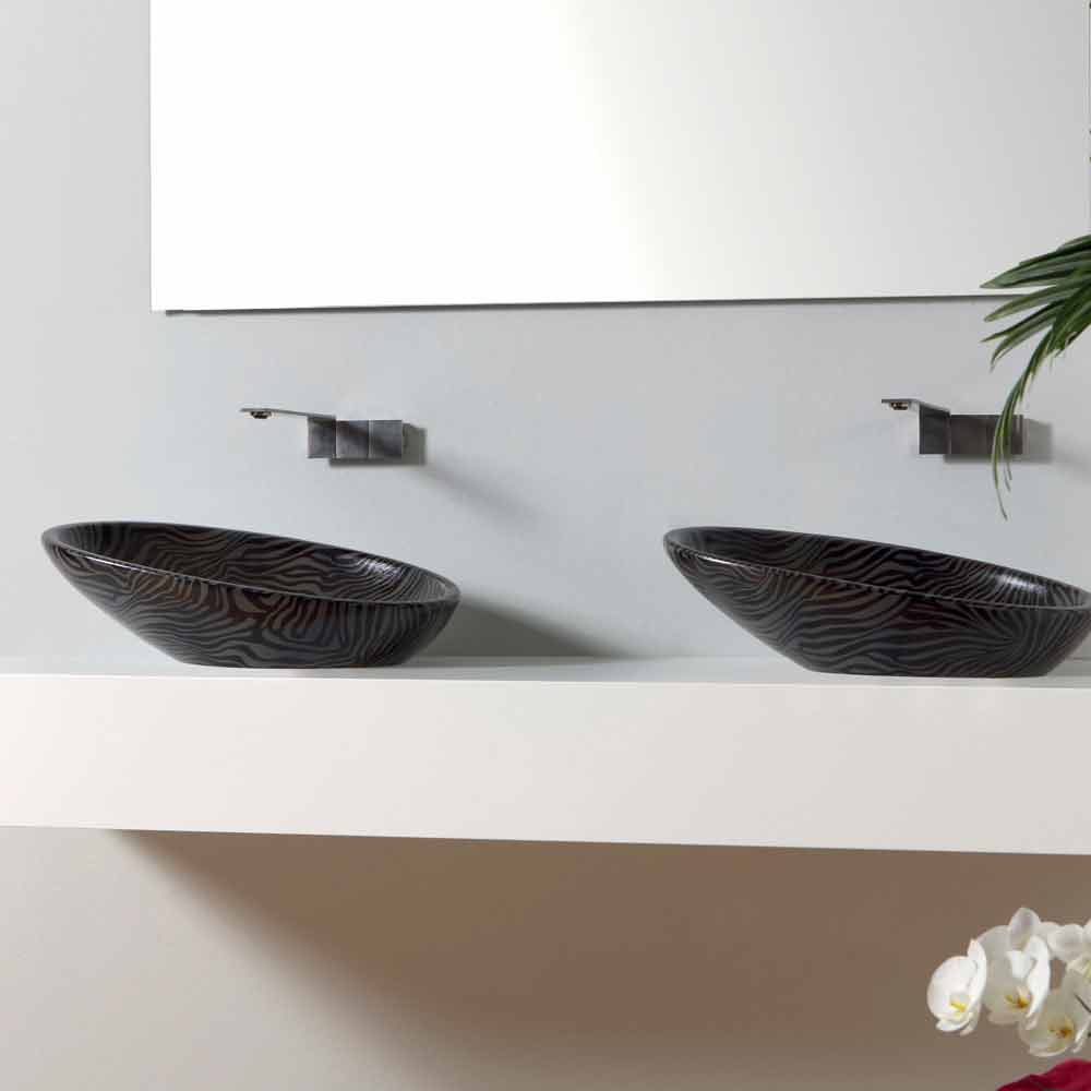 Glossy is de wastafel op het aanrecht gemaakt in Italië door meesters in keramiek met een zilveren zebra-afwerking.