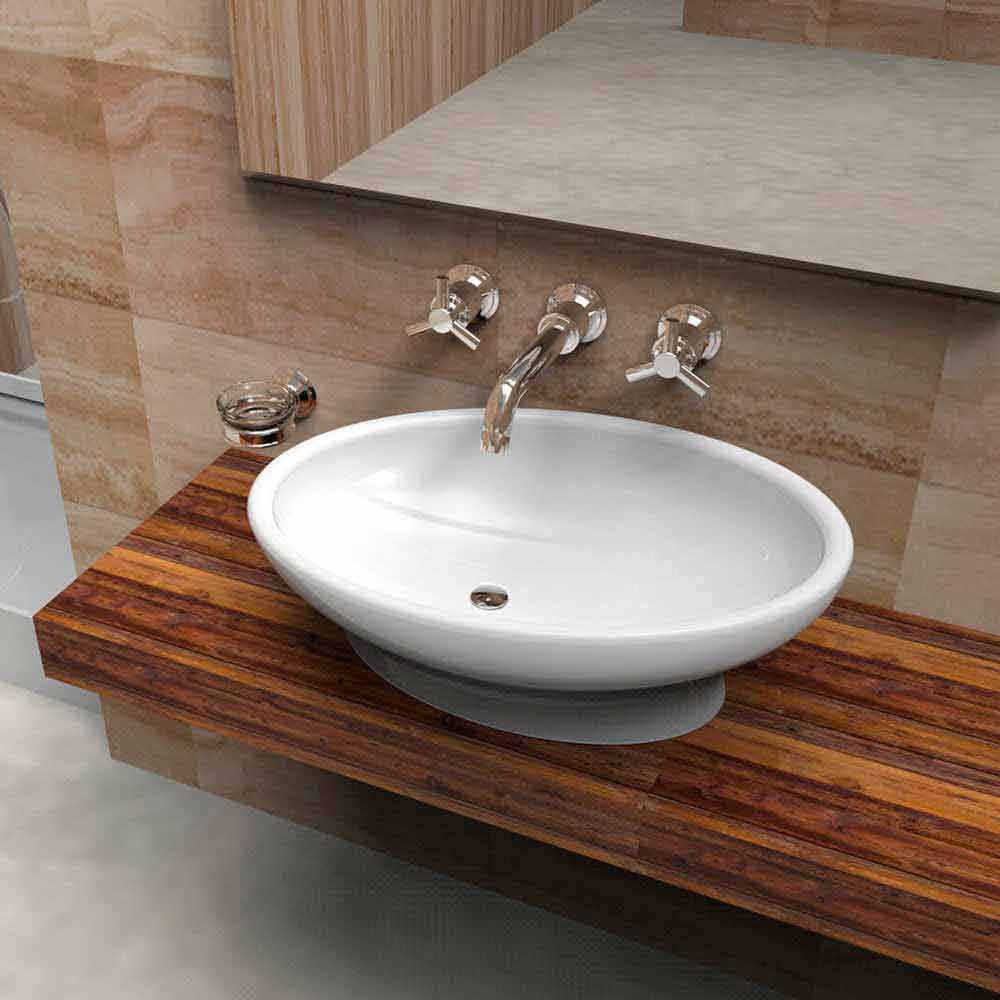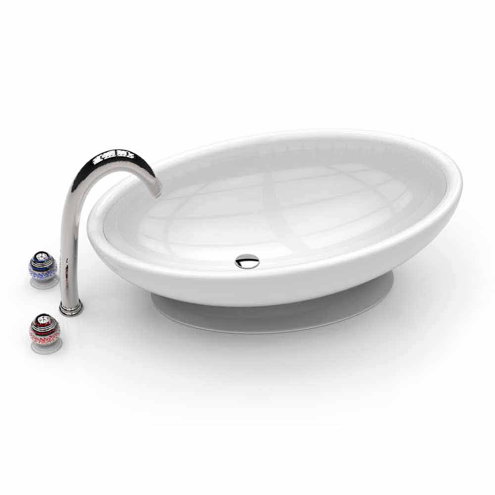 De vorm van deze wastafel voor de badkamer doet denken aan een eierhelft, waaraan het zijn naam ontleent.