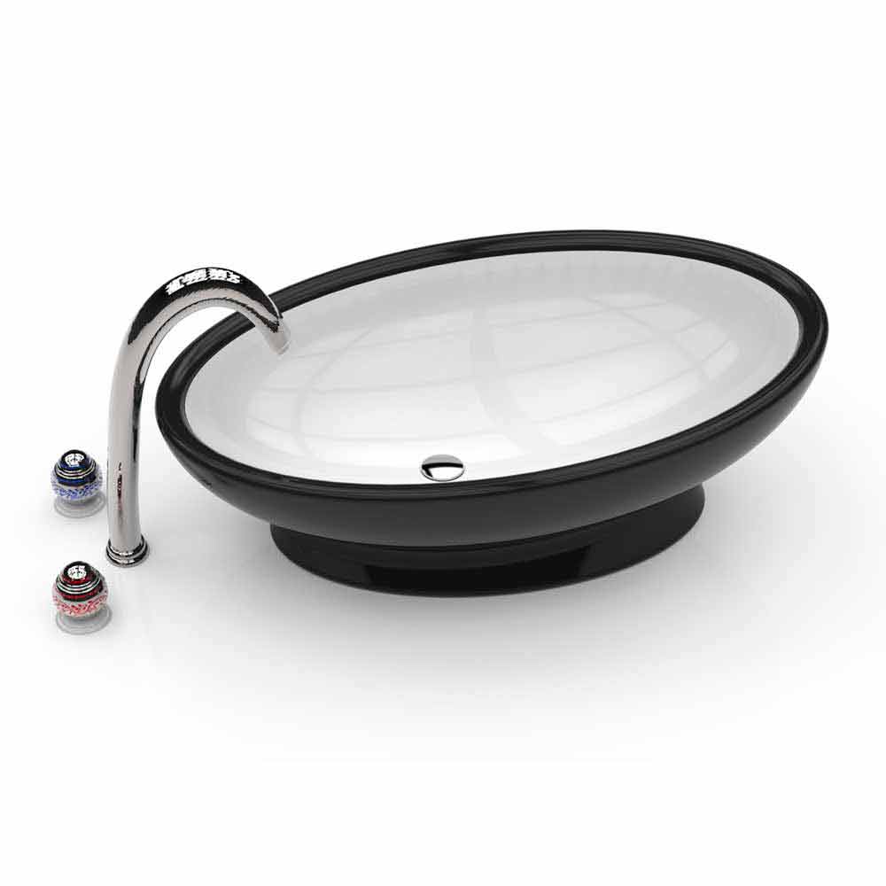 De beschikbaarheid van dubbele kleuren, binnen en buiten, zorgt ervoor dat deze wastafel elke badkamer kan inrichten, zonder ooit banaal te worden.
