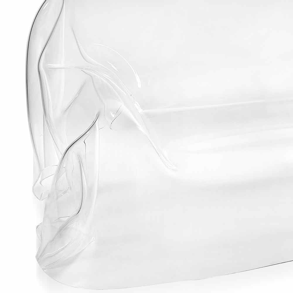 De bank gedrapeerd Jolly is uniek. Uit een plaat maagdelijk polymeer 100% transparant PMMA plexiglas geheel gedrapeerd met de hand wordt geboren een unieke en eenmalige bank. De structuur die is volledig zelfdragend en is geschikt voor 2 personen. De fysieke en technische kenmerken van plexiglas (shock, stressbestendig, duurzaam, warmte-isolerend) maken dit artikel een aanvulling van praktische en functionele meubels, geschikt voor elke omgeving. De helderheid en de helderheid blijven constant en ongewijzigd in de tijd. De plexiglas PMMA uit nieuwe polymeer wordt gebruikt door niet-toxisch, hypoallergeen, geurloos en antibacteriële. Recyclebaar 100%. Bedacht, ontworpen en gemaakt in Italië, met Italiaanse materialen.