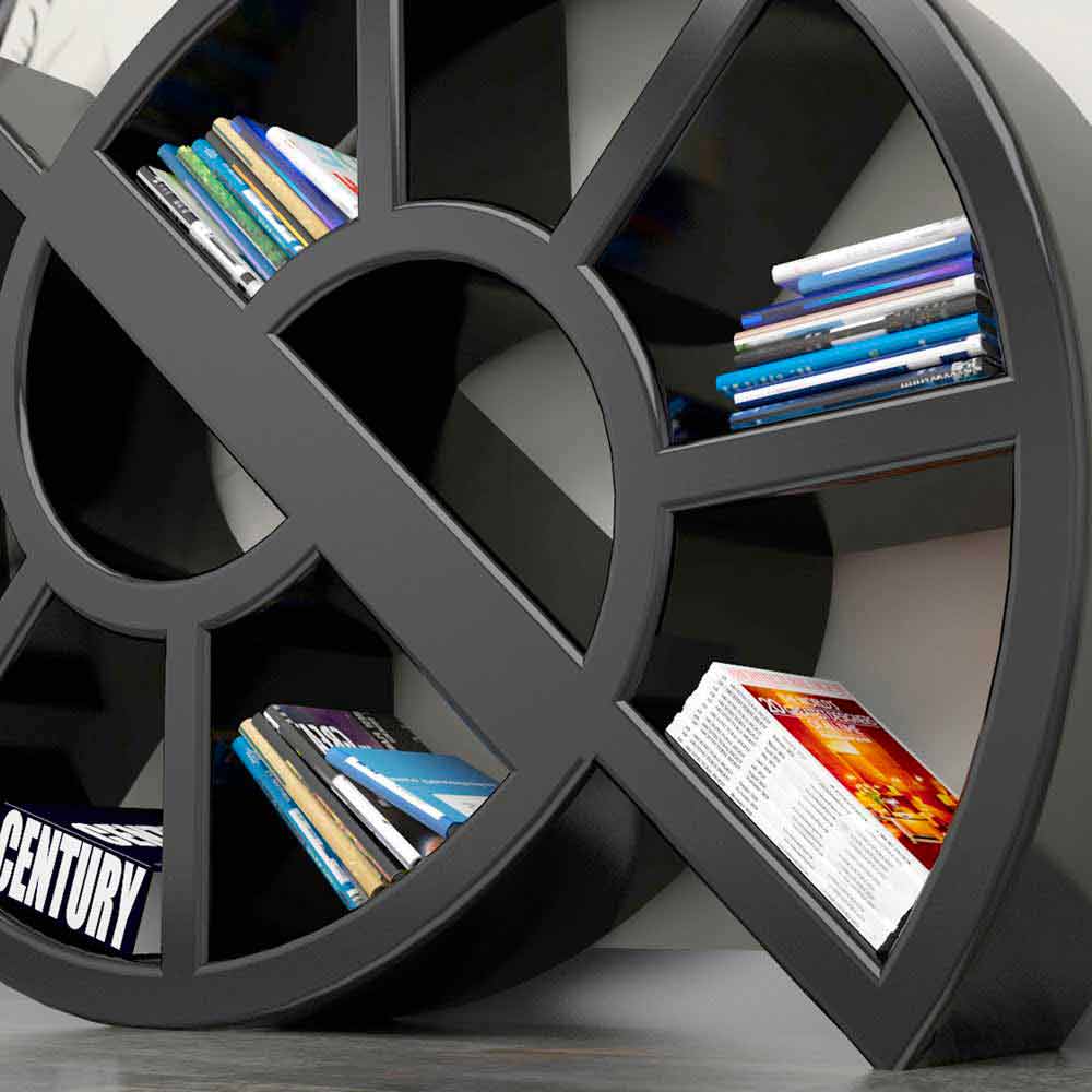 Deze design boekenkast maakt optimaal gebruik van functionaliteit en schoonheid, met een glanzend gelakte afwerking van elk type kleur, zal het het overheersende en onbetwiste meubelstuk zijn.