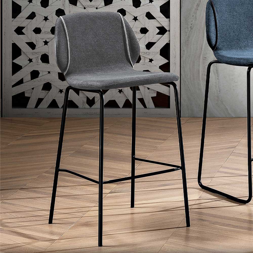 Maak uw keuken of eetkamer comfortabeler en eleganter met de moderne monocoque kruk met zitting bekleed met gekleurde waterafstotende stof met rand verkrijgbaar in verschillende kleuren:
