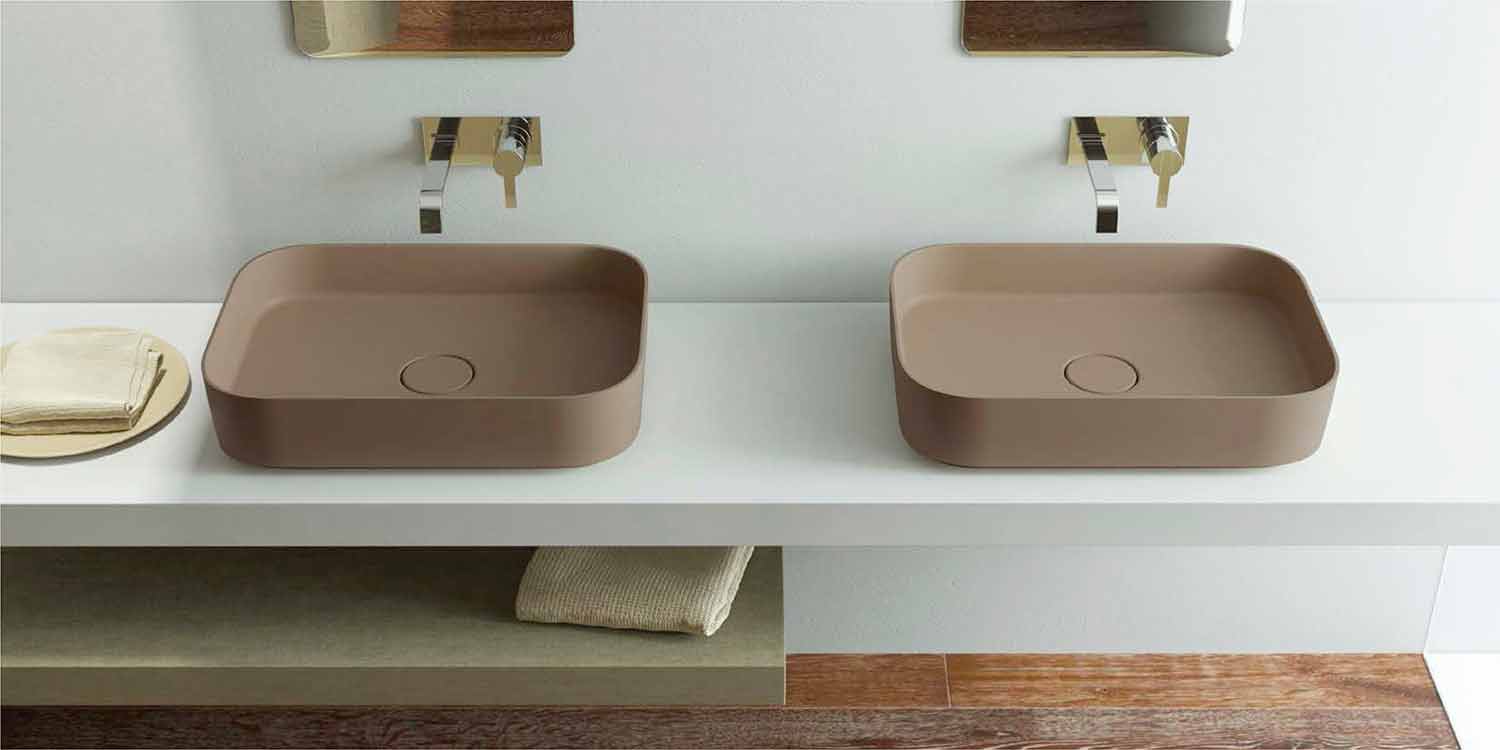 Formicola is een aanrechtwastafel die wordt gekenmerkt door een elegant en modern design met totale afwezigheid van scherpe randen.
