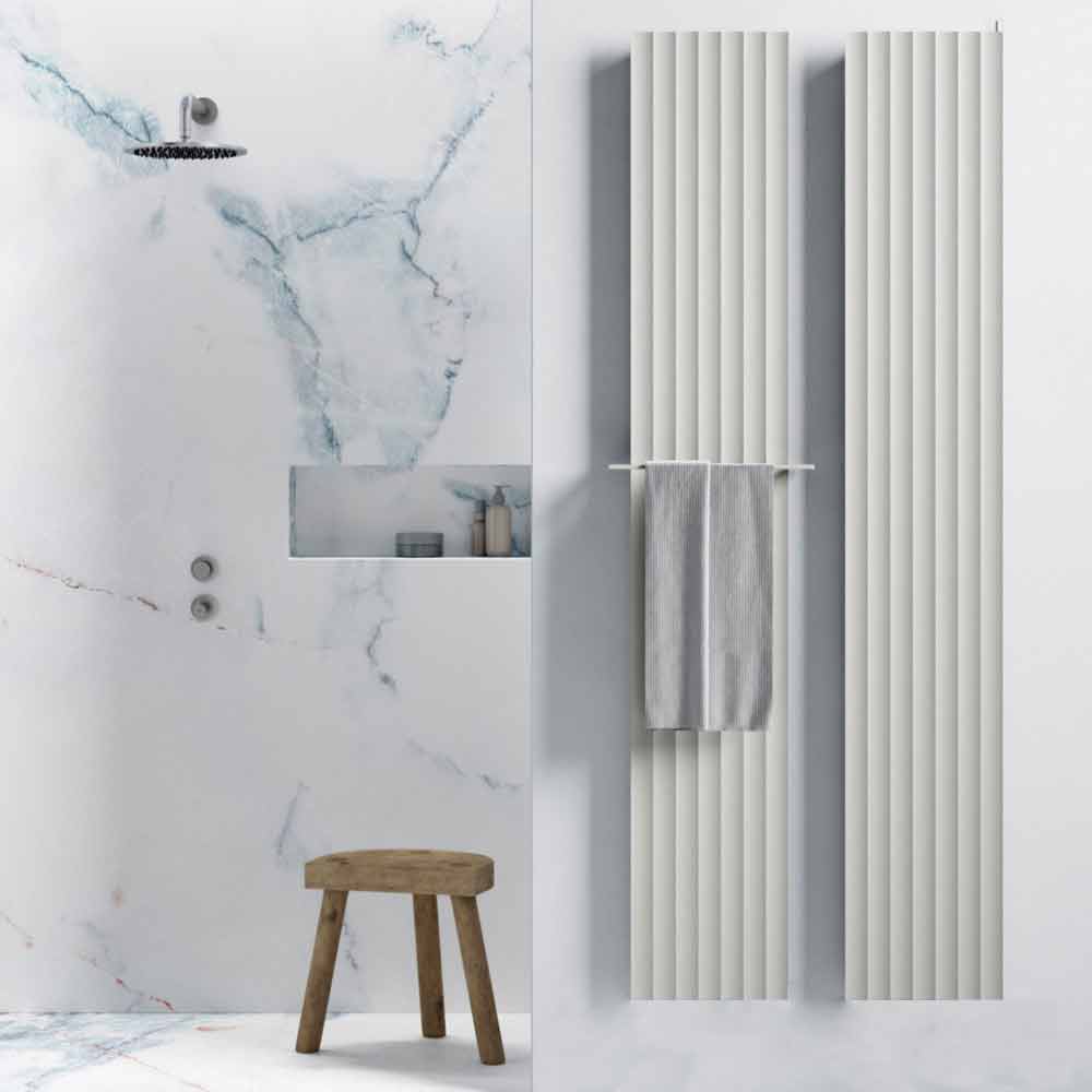 hydraulische radiator heeft een modern design waarbij de echte hoofdrolspeler de architectuur is, gekenmerkt door lijnen met een afwisselend ritme die lichtspelen en dialogen met de omringende ruimte creëren.
