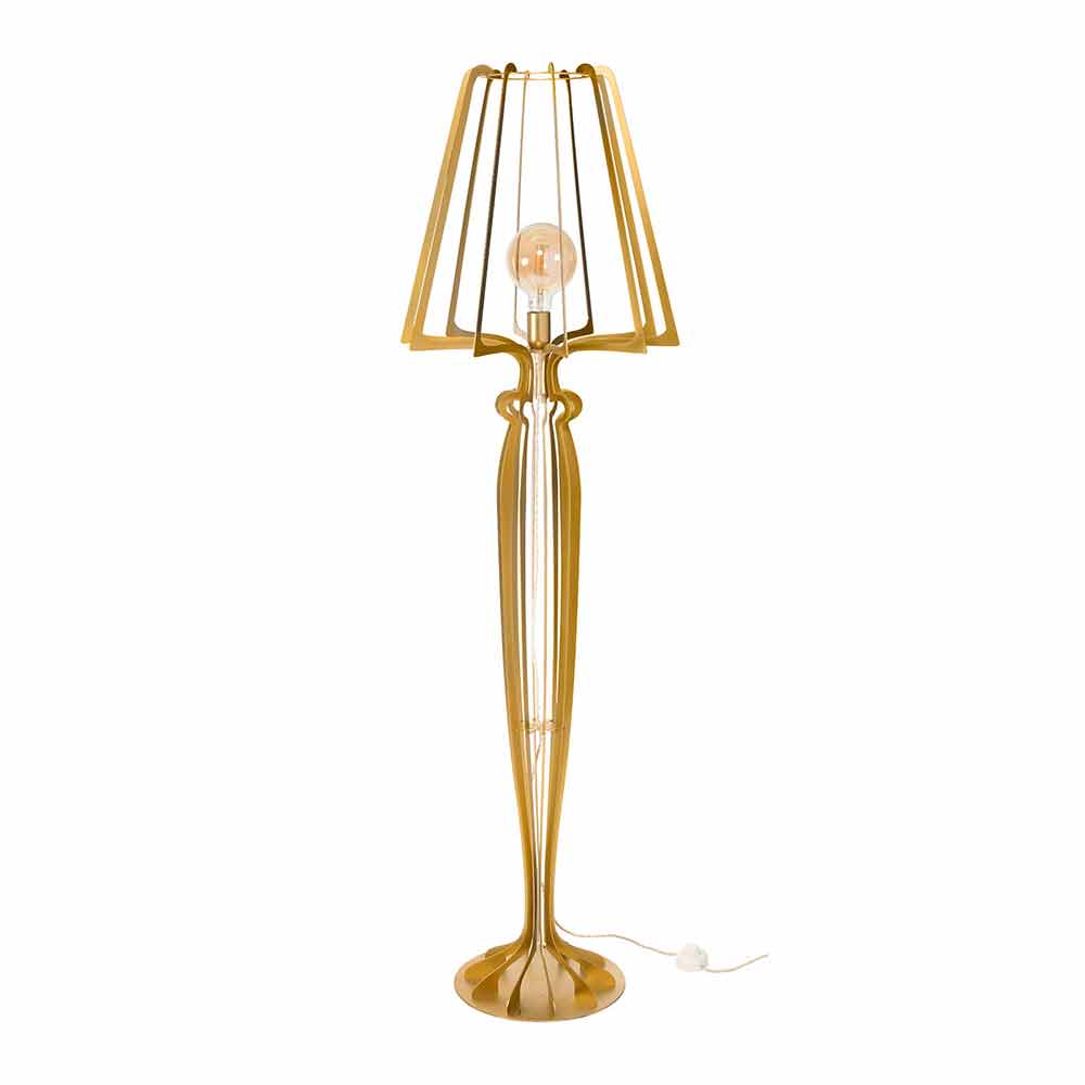 vloerlamp wordt gekenmerkt door verfijnde en uitgebreide lijnen, perfect om te integreren in elke omgevingsstijl, van klassiek tot modern.
