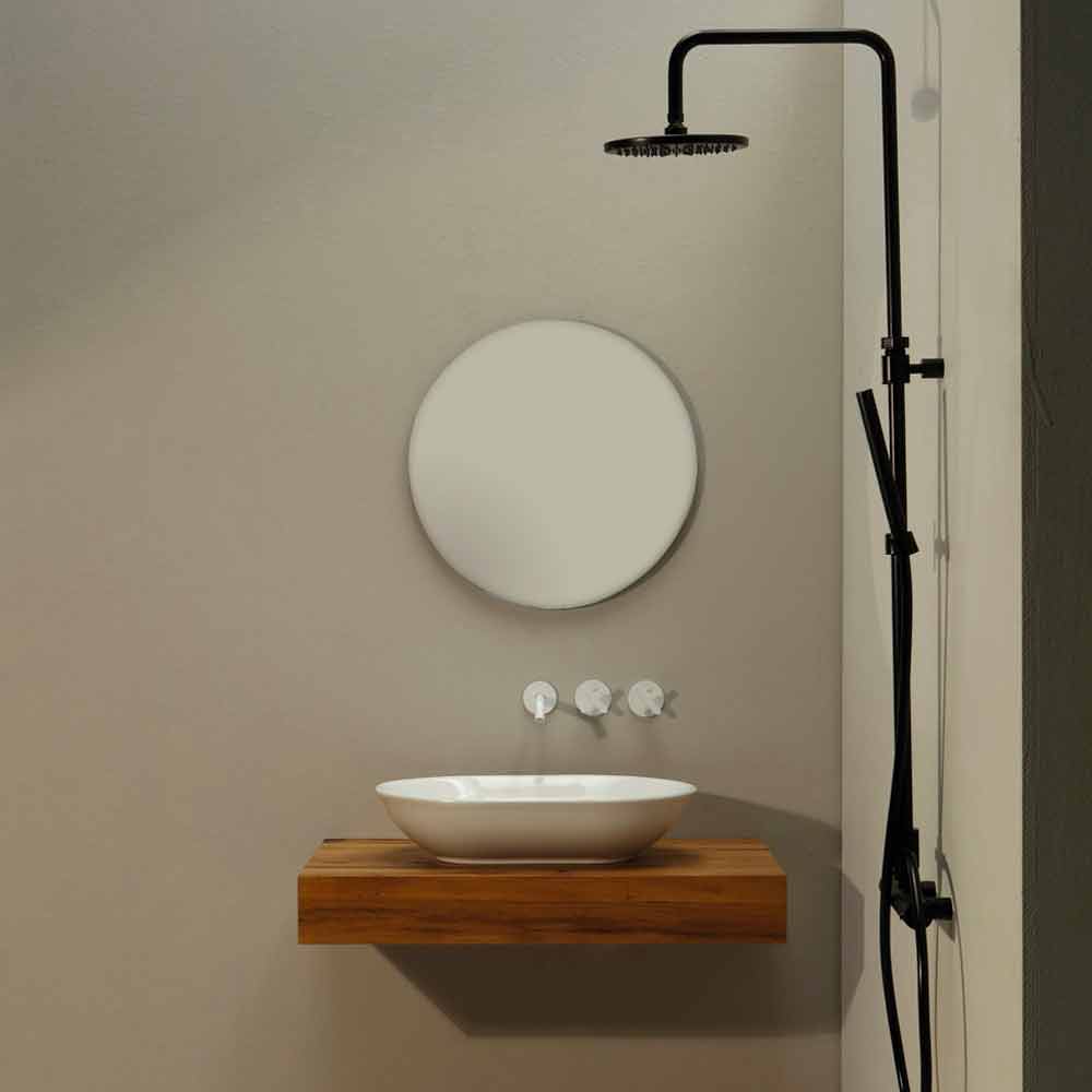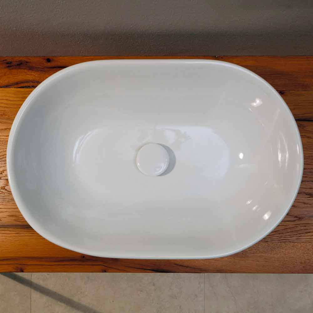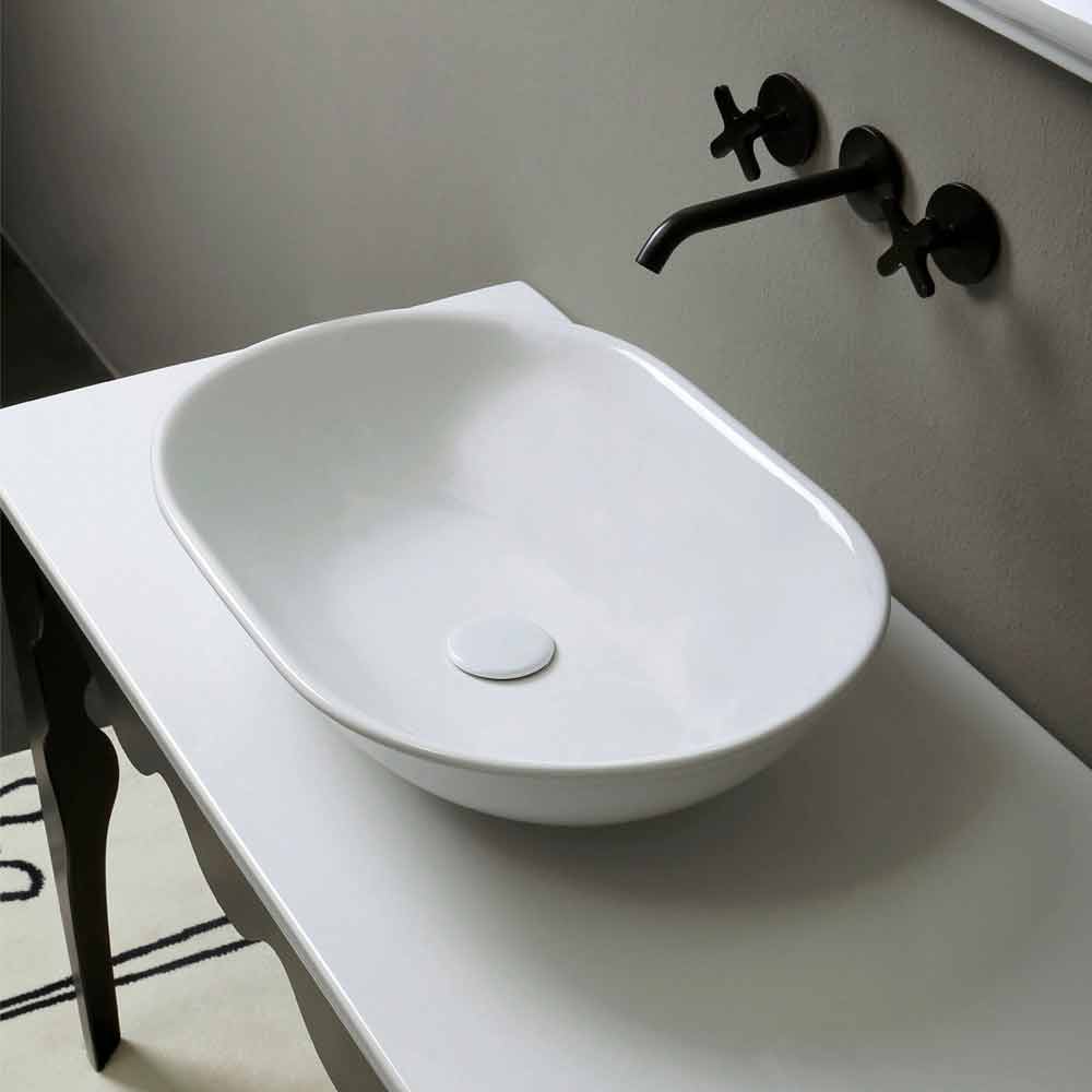 Deze wastafel, met een bijzonder dunne rand, kan worden aangepast door te kiezen tussen verschillende afwerkingen en decoraties: om informatie en/of een gepersonaliseerde offerte aan te vragen, schrijf naar clienti@viadurini.it.
