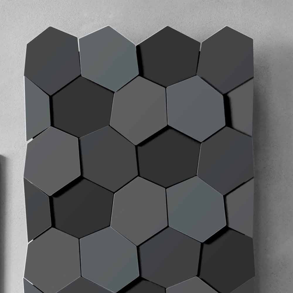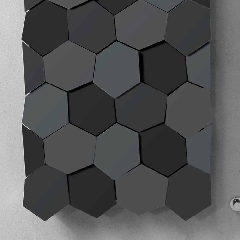 Hydraulische verticale wandradiator van modern design in staal met zeshoeken, gemaakt in Italië.