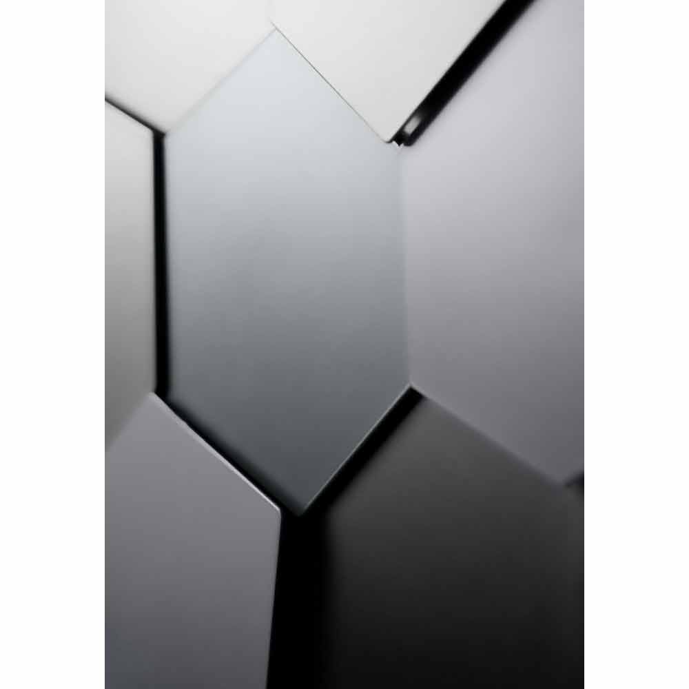 hydraulische stralingsplaat heeft een modern design dat wordt gekenmerkt door modulaire en overlappende zeshoekige platen die een natuurlijke en suggestieve sfeer creëren.