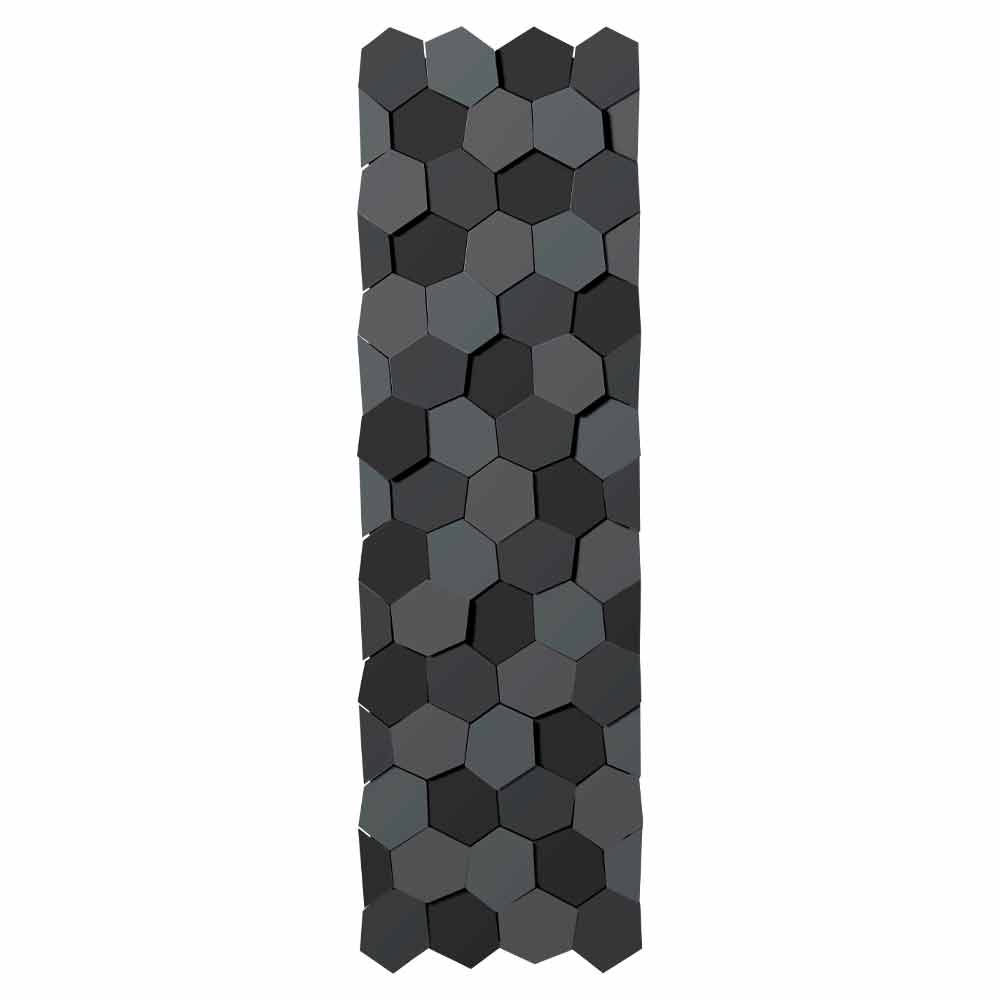 De kleuren van de zeshoeken zijn antracietgrijs RAL 7016, blauwgrijs RAL 7031, lichtgrijs RAL 7035, telegrijs 1 RAL 7045.