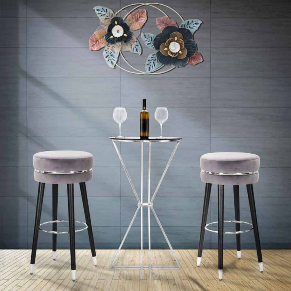 Ronde barkruk in moderne stijl Ø 35 cm in hout en stof.