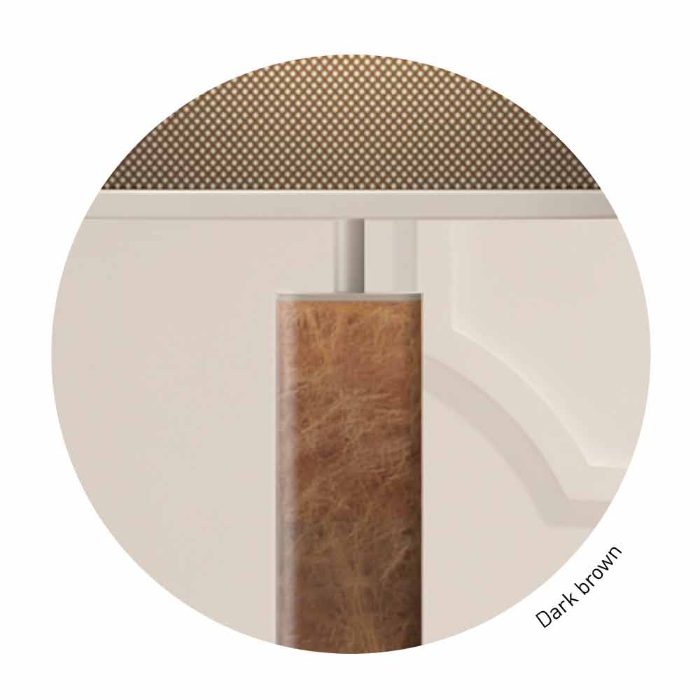 - zilver lux metaal, donkerbruin leer en bruin gaas;