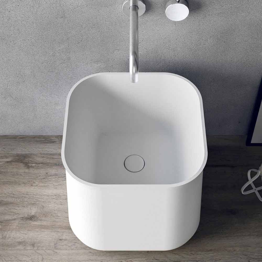 Vierkante aanrechtwastafel in witte hars, modern design met hoge randen.