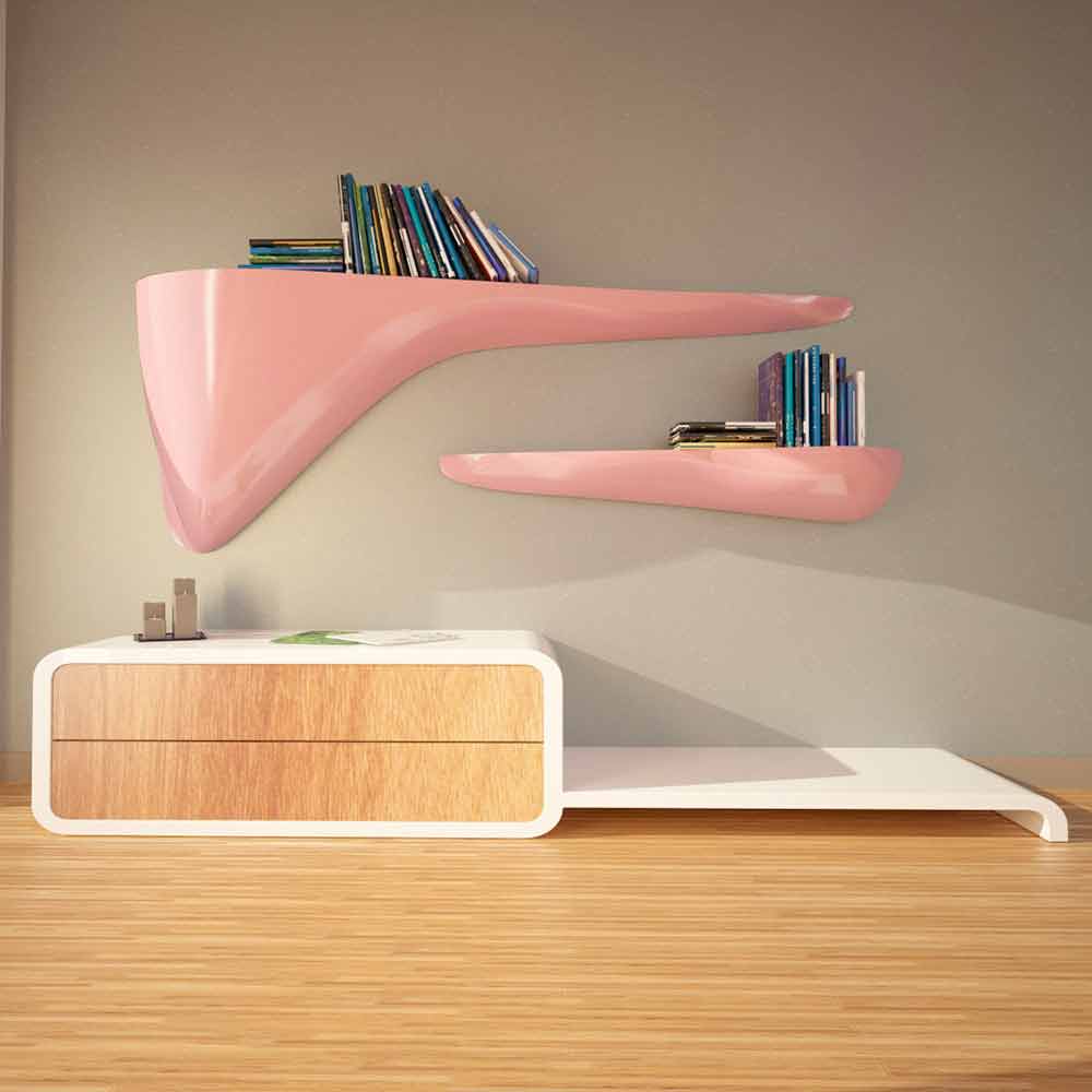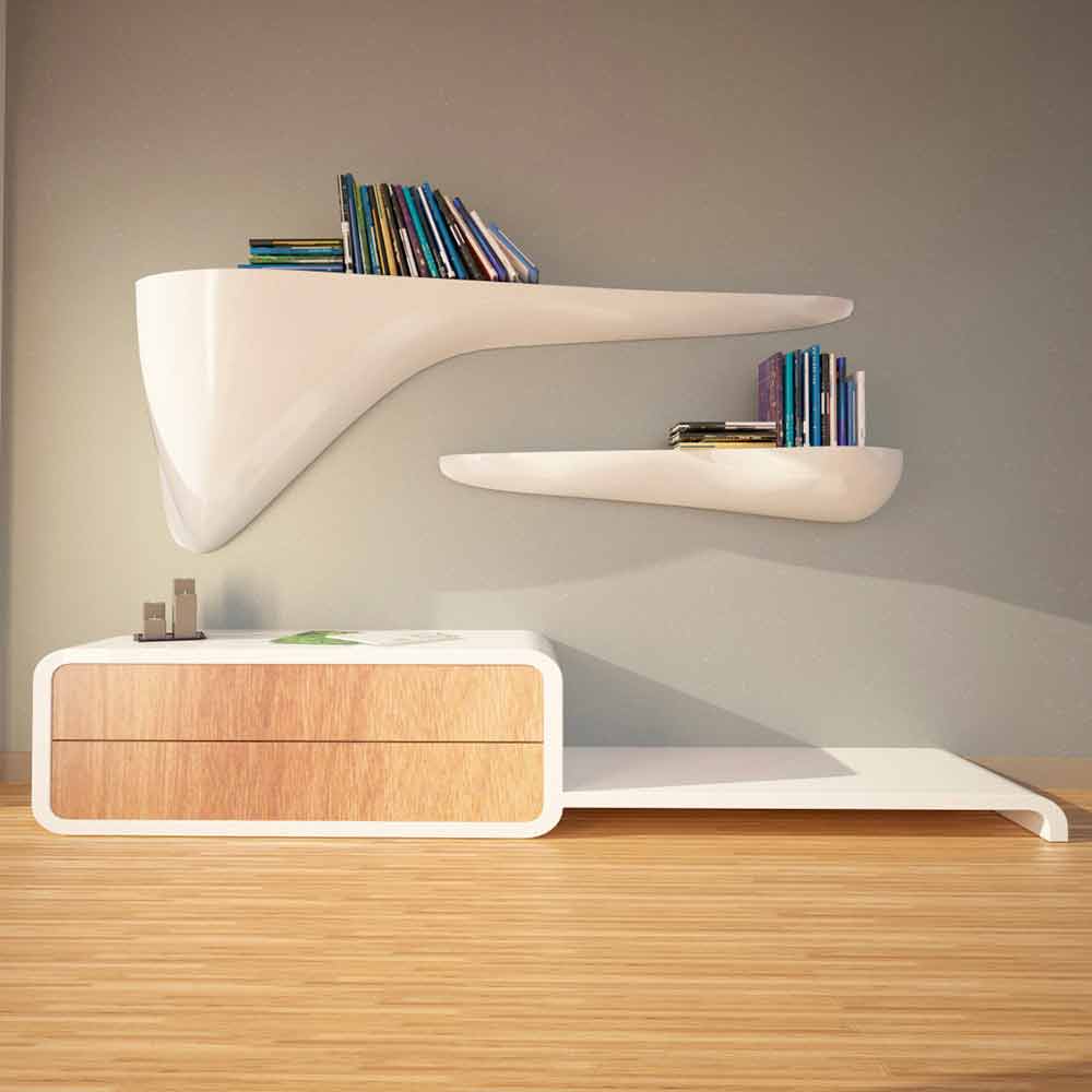 Sizzano is een plank met een bijzondere vorm volledig gemaakt van Solid Surface®; perfect voor het decoreren van omgevingen met originaliteit en klasse.