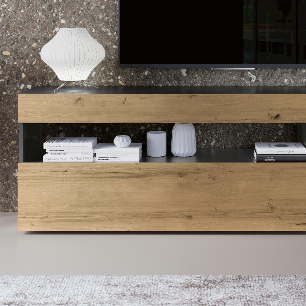 - wandmeubel met eiken lade, NORDIC KNOTTED OAK + CHARCOAL afwerking, MDF-schaal, laden in geknoopt eiken meubelplaat
