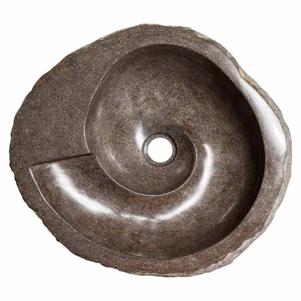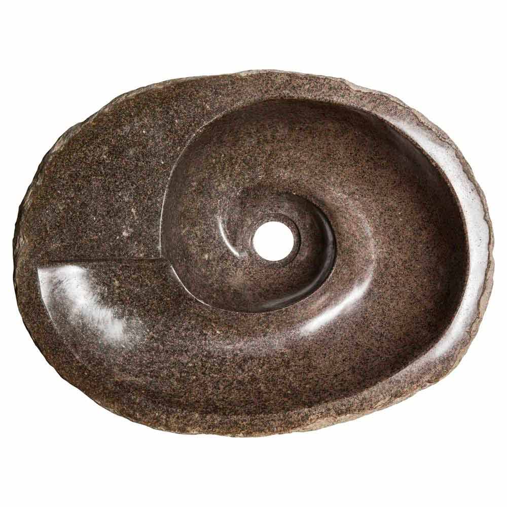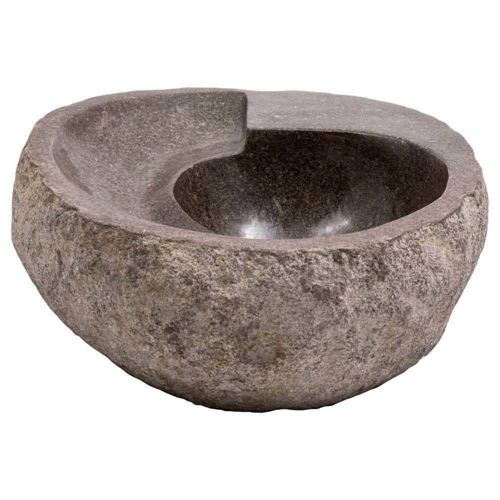 Busca is een fantastische ronde wastafel met een onregelmatige vorm, handgemaakt in riviersteen.