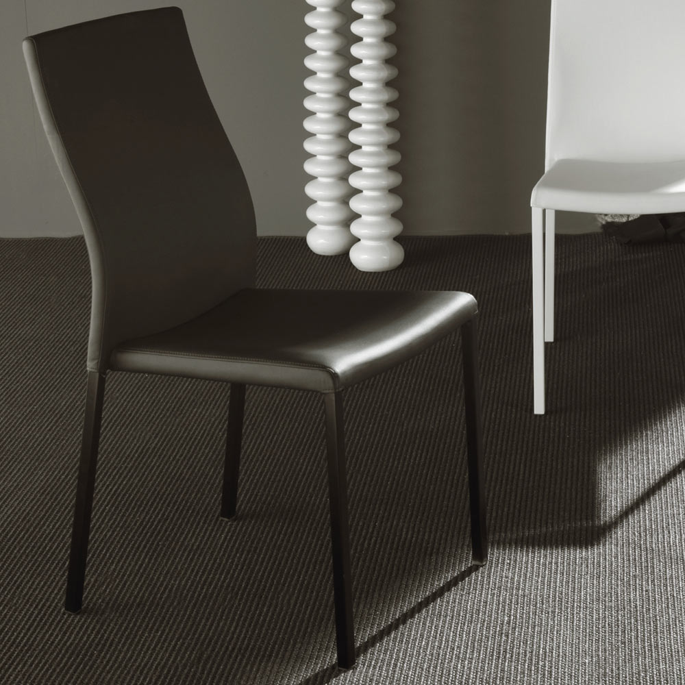 Stapelbare eetkamerstoel bestaande uit gelakte metalen structuur en eco-lederen zitting . Het resultaat van eenvoudige en hoogwaardige materialen die helpen bij het creëren van een perfect product voor elke omgeving. Gekenmerkt door een slank en elegant ontwerp, heeft deze stoel eenvoudige en golvende lijnen, een elegante en delicate stijl die eenvoud en verfijning combineert.