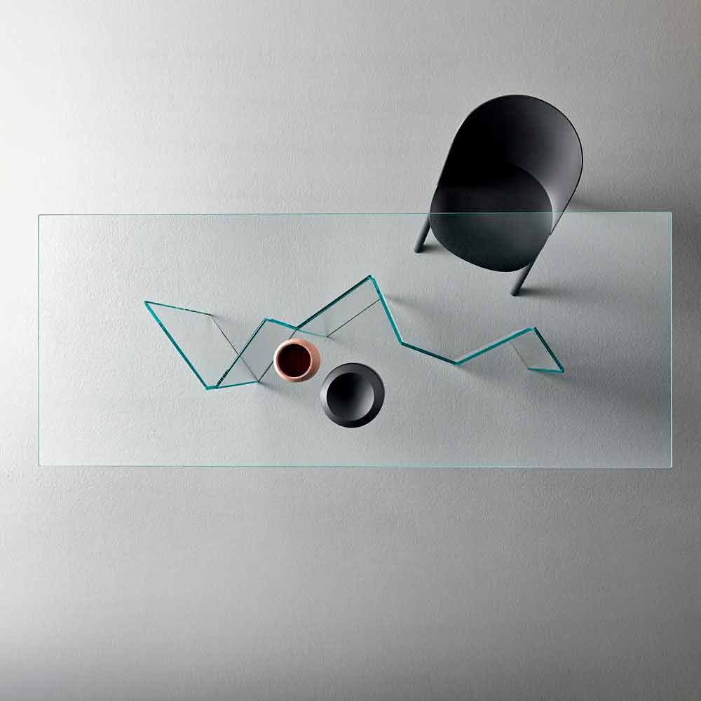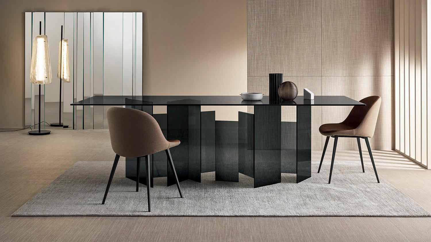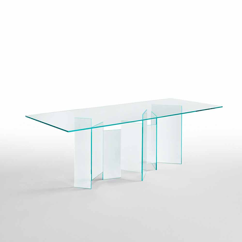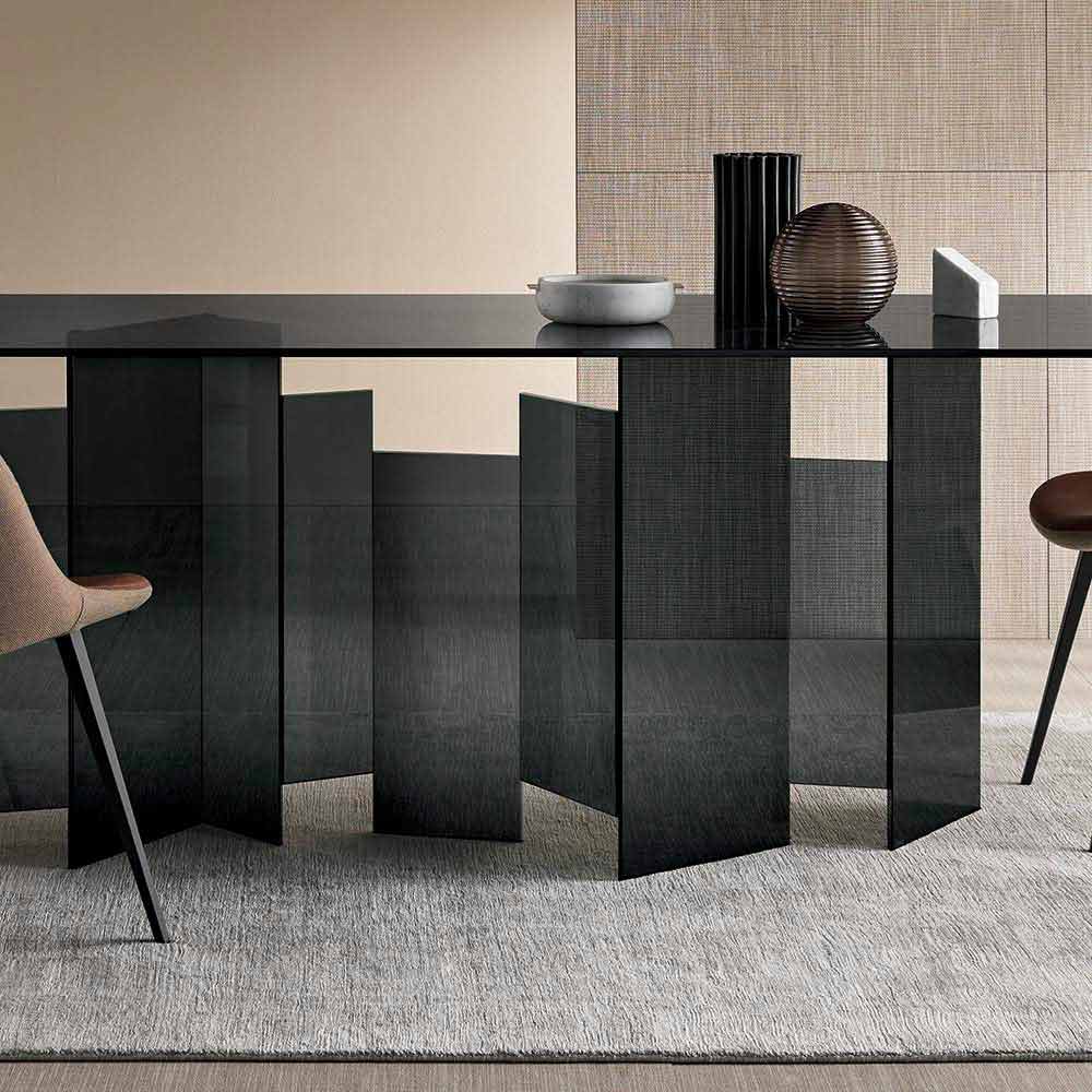 Moderne design eettafel in extra helder of gerookt glas, gemaakt in Italië.