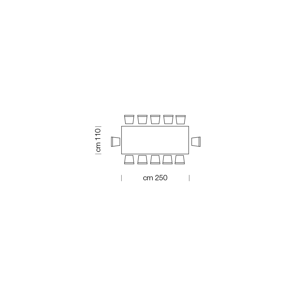 witgelakte stalen basis. Maatregelen- L 250 x D 110 x H 75 cm 12 zitplaatsen