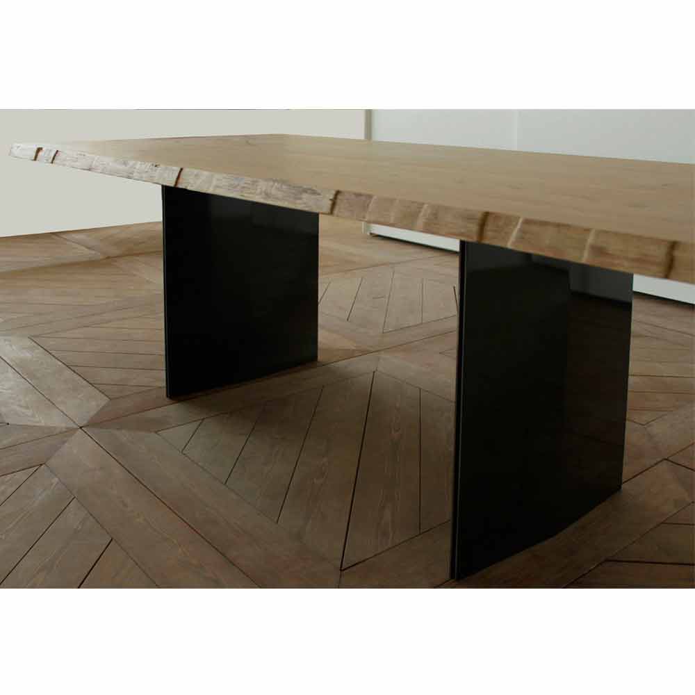 De vaste tafel van Paul wordt gekenmerkt door een licht eiken geblafde houten top, onregelmatig in vormen en kleuren, net zoals de natuur creëert. Kelder in ruwe zwarte plaat afgewerkt met olie.