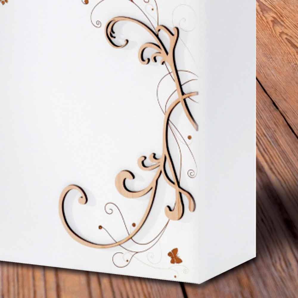 Dimensies: Materiaal: - Lasergesneden gevormd gelakt hout met decoratieve houten applicatie