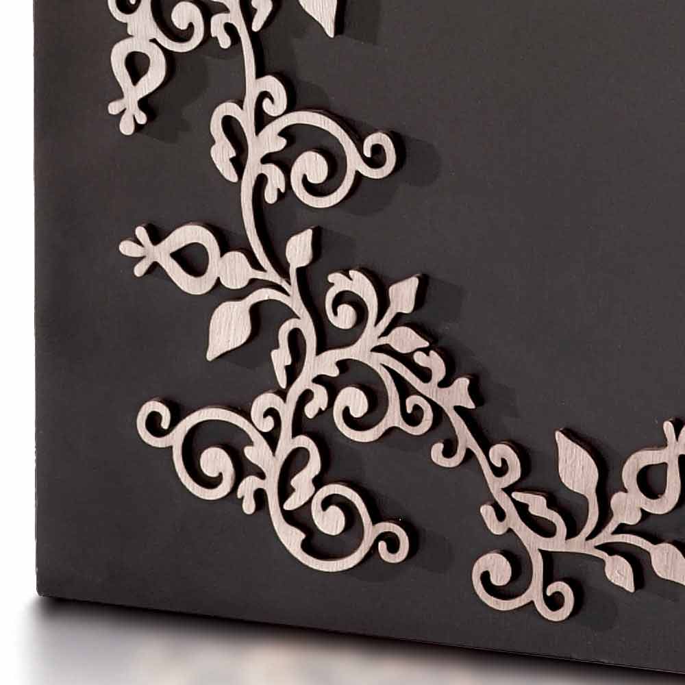 Dimensies: Materiaal: - Lasergesneden gevormd gelakt hout met decoratieve houten applicatie