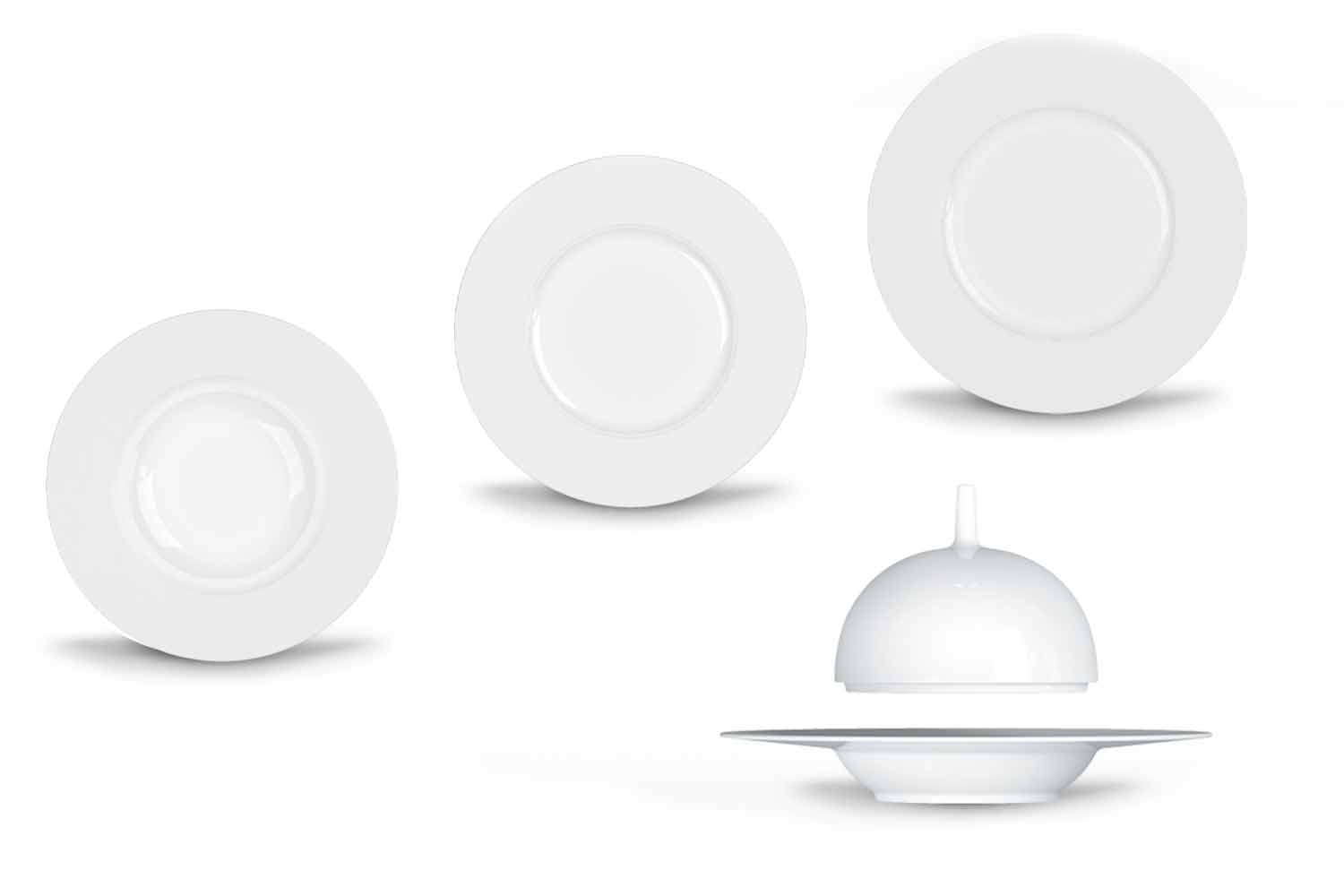 set dinerborden wordt gepresenteerd als eenvoudig, elegant en verfijnd voor de haute cuisine, met brede cirkels en lange en genereuze banden.