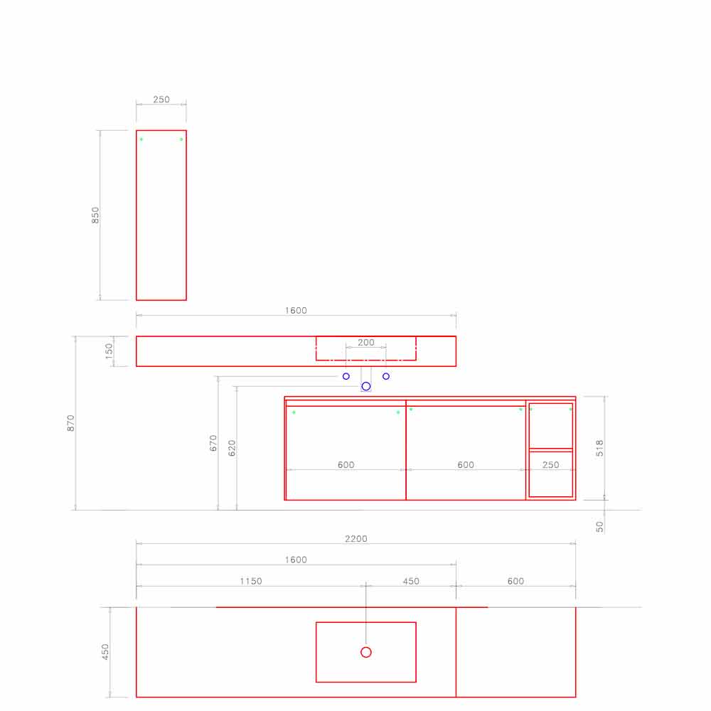 - bovenbak met geïntegreerde wastafel in Teknorit h.15 zonder overloopgat, inclusief kraangat, inclusief gratis afvoer L.160 X D.45 X H.12 cm