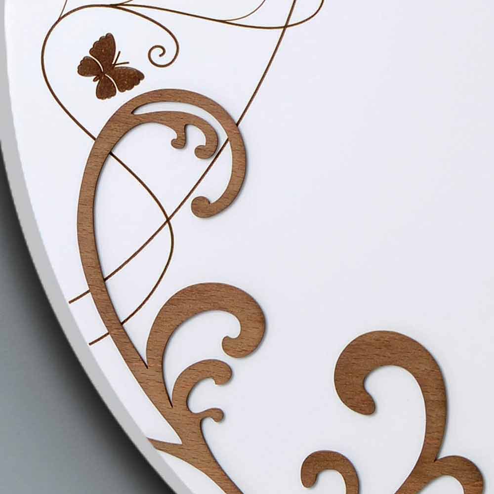 Moderne design ronde wandklok, in gedecoreerd hout, gemaakt in Italië.